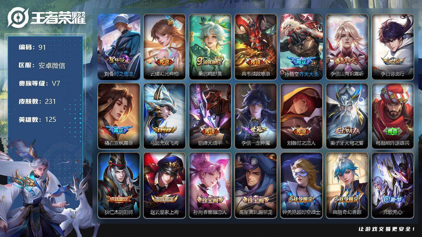 游戏区服:王者荣耀 / 安卓系统 / 微信