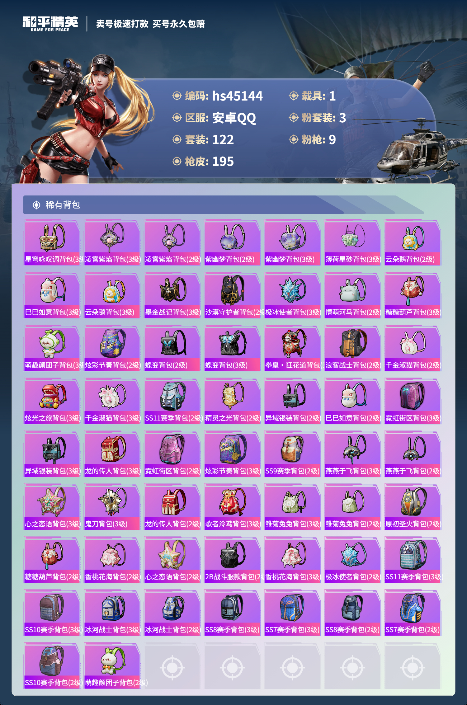游戏区服:和平精英 / 安卓系统 / QQ账号