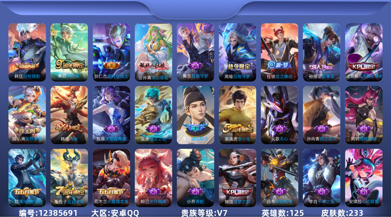 【10894788】【可二次】【QQ(安卓)】乱世虎臣 鹰眼统帅 水晶猎龙者 偶像歌手 原初探秘者 圣诞恋歌 星夜王子 沙漠行僧 暗夜猫娘 御霄 烛龙 朔风刀 逐梦之影 万华元夜 高山流水 御銮 特工魅影 女仆咖啡 金属风暴 凯尔特女王 疑决卦 醍醐杖 青蛇 德古拉伯爵 江河有灵 古海寻踪 鬼剑武藏 炼金王 探海日记 魅力维加斯 李小龙 云中旅人 箭羽风息 穷奇 天狼绘梦者 弈星混沌棋 大漠名商
