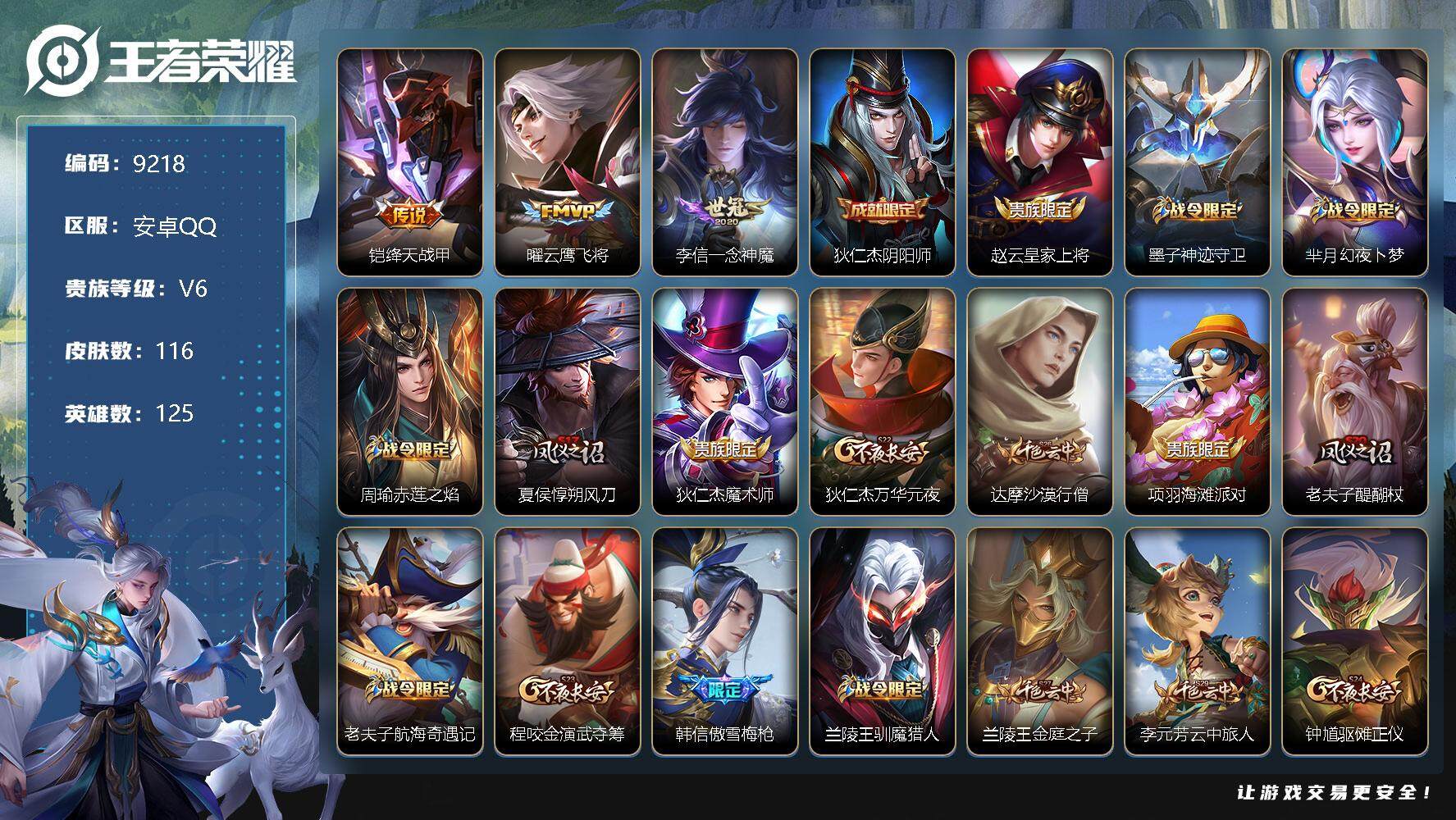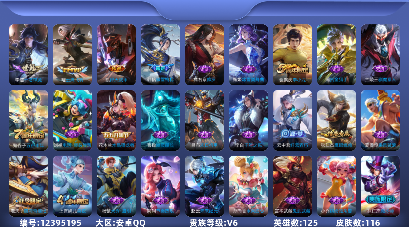 游戏区服:王者荣耀 / 安卓系统 / QQ账号