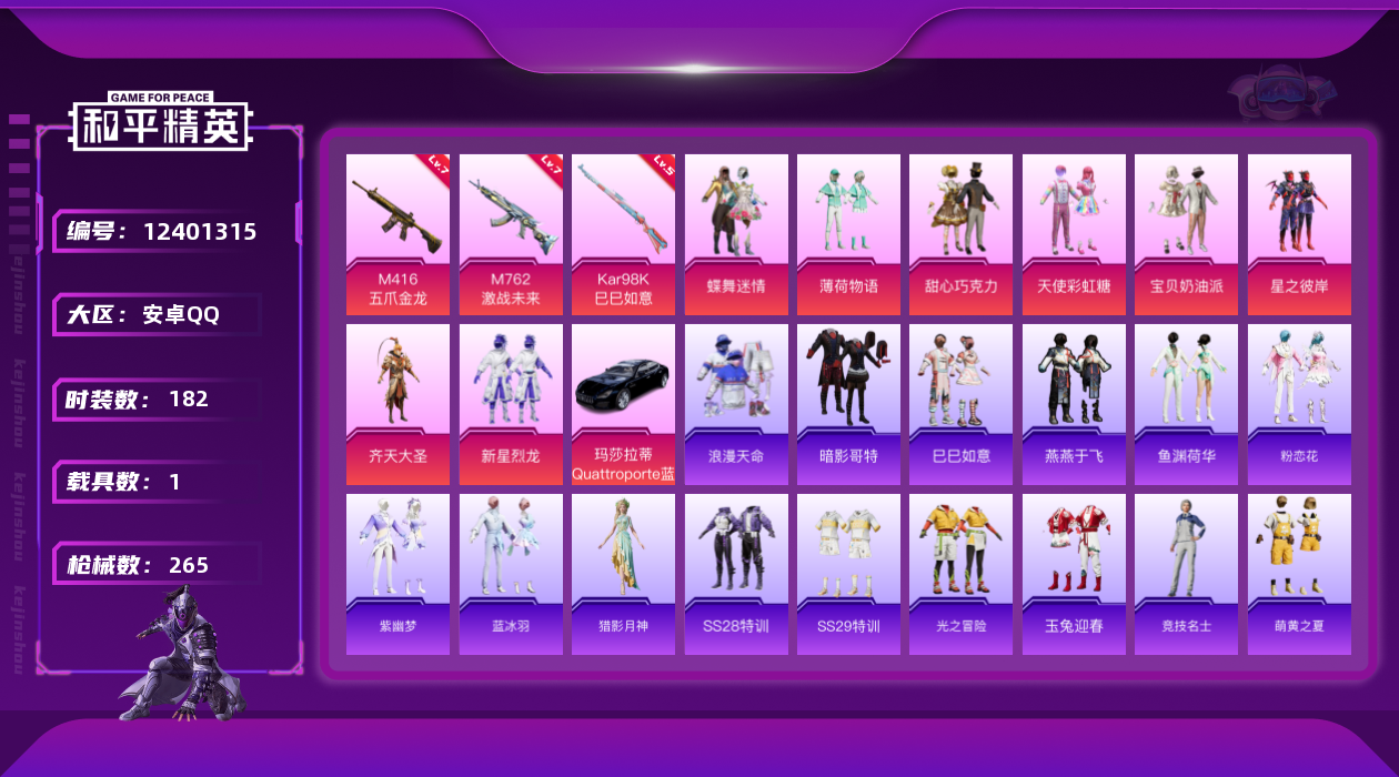 游戏区服:和平精英 / 安卓系统 / QQ账号