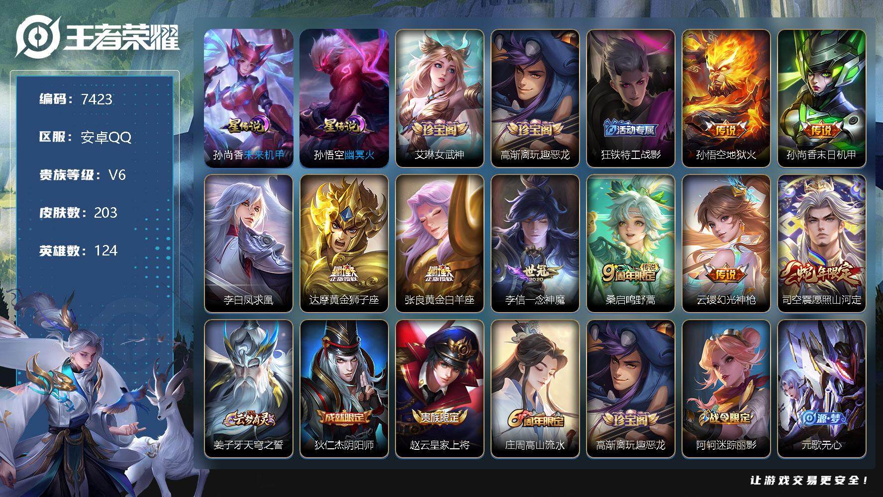 游戏区服:王者荣耀 / 安卓系统 / QQ账号