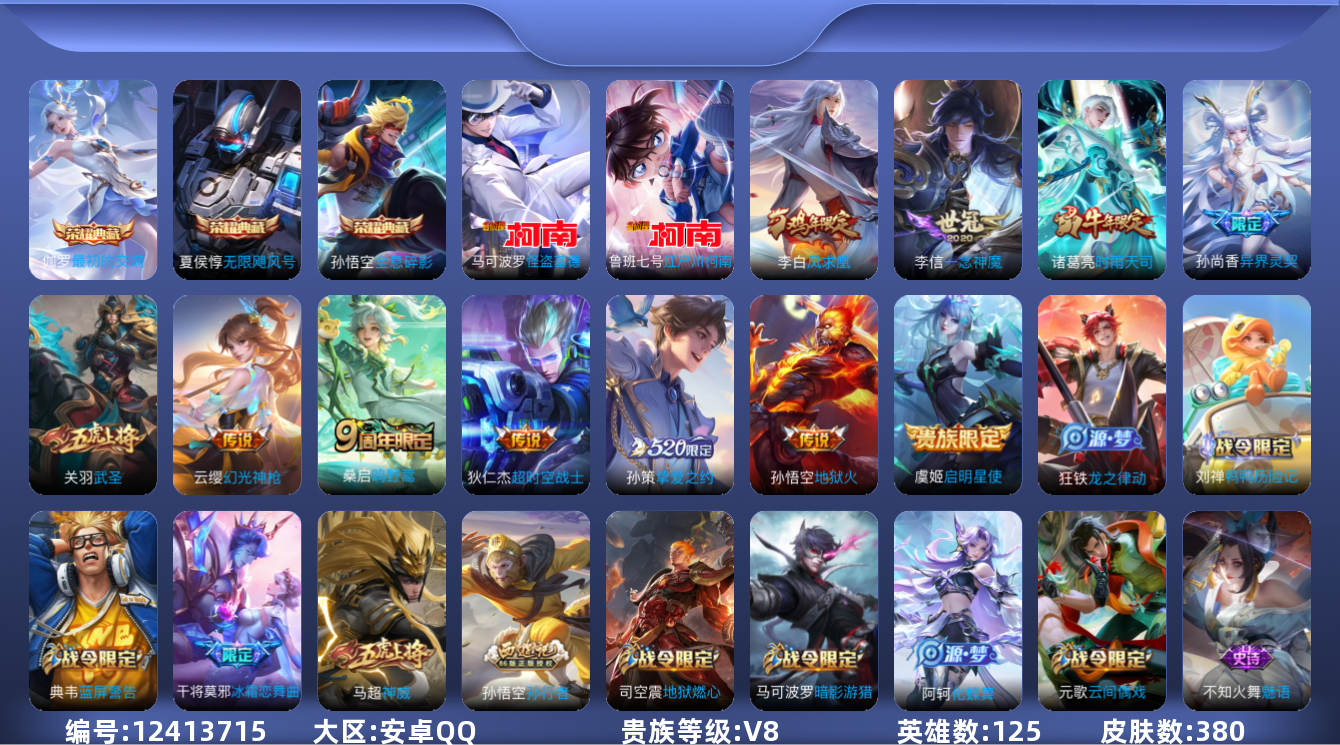 【10900918】【可二次】【QQ(安卓)】黎明之约 乱世虎臣 鹰眼统帅 水晶猎龙者 原初探秘者 永昼 圣诞恋歌 玄武志 星夜王子 沙漠行僧 紫霞仙子 烛龙 缤纷独角兽 江户川柯南 万华元夜 御銮 修罗 特工魅影 醍醐杖 德古拉伯爵 江河有灵 古海寻踪 炼金王 孙行者 魅力维加斯 箭羽风息 御旌 弈星混沌棋 大漠名商 乘风破浪 遇见飞天 擒涛扼浪 天秀·启明 圣诞狂欢 绅士熊喵 驱傩正仪 纤云