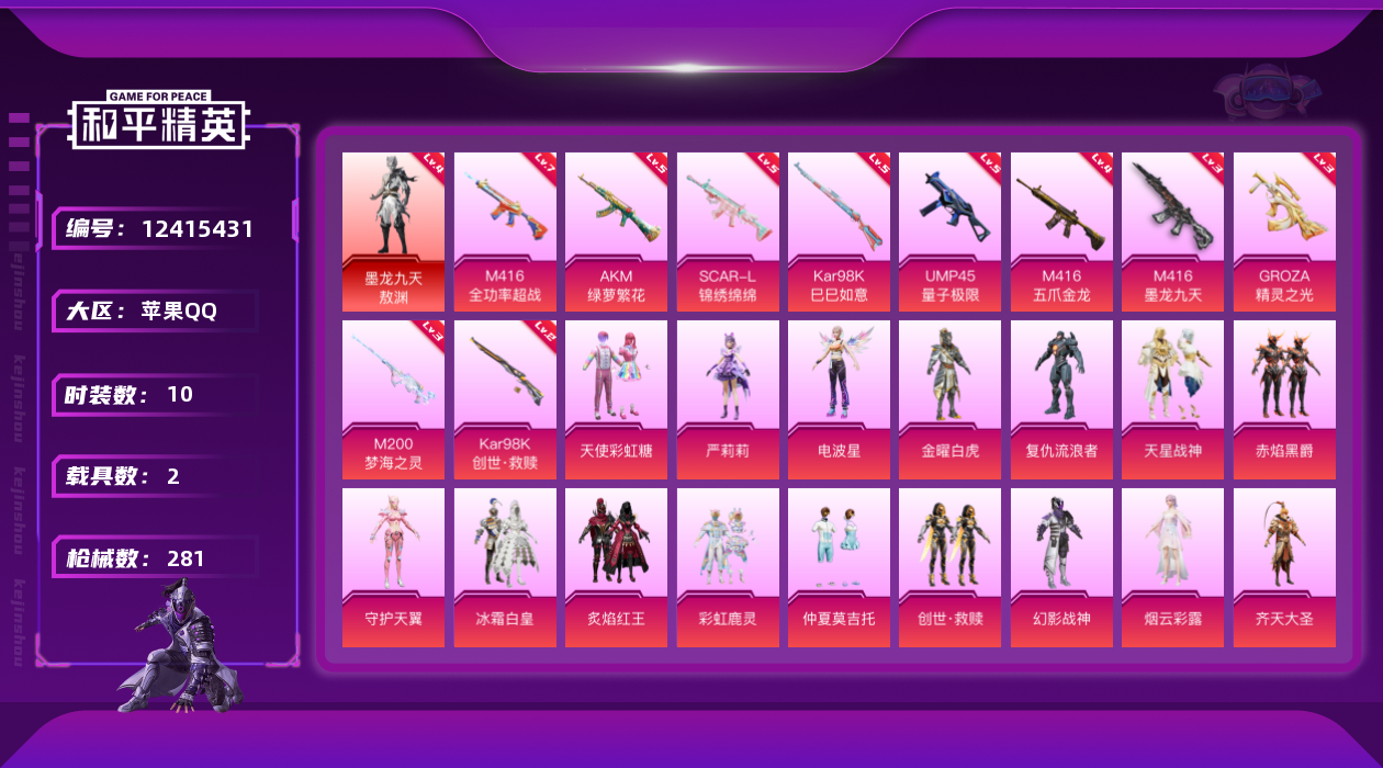 【10901368】【可二次】【苹果QQ】龟仙人 AKM-绿萝繁花 S686-奇异狩猎者 M416-五爪金龙 金曜白虎 漫步者 炙焰红王 忍者信条 风花雪月飞行器 赤焰黑爵 巡查衣 UMP45-量子极限 GROZA-林间仙鹿 墨龙九天-敖渊 深海小丑鱼 浪漫波比 瑞龙福将 浪漫天命 纯白誓言 胖达圆圆 团圆交子 M762-瑞龙福将 齐天大圣飞行器 迈凯伦570S 天际蓝 龙翔九天飞行器 彩虹鹿灵