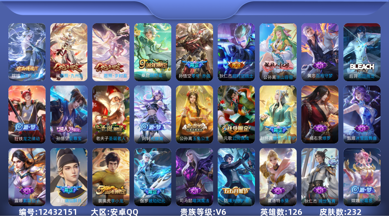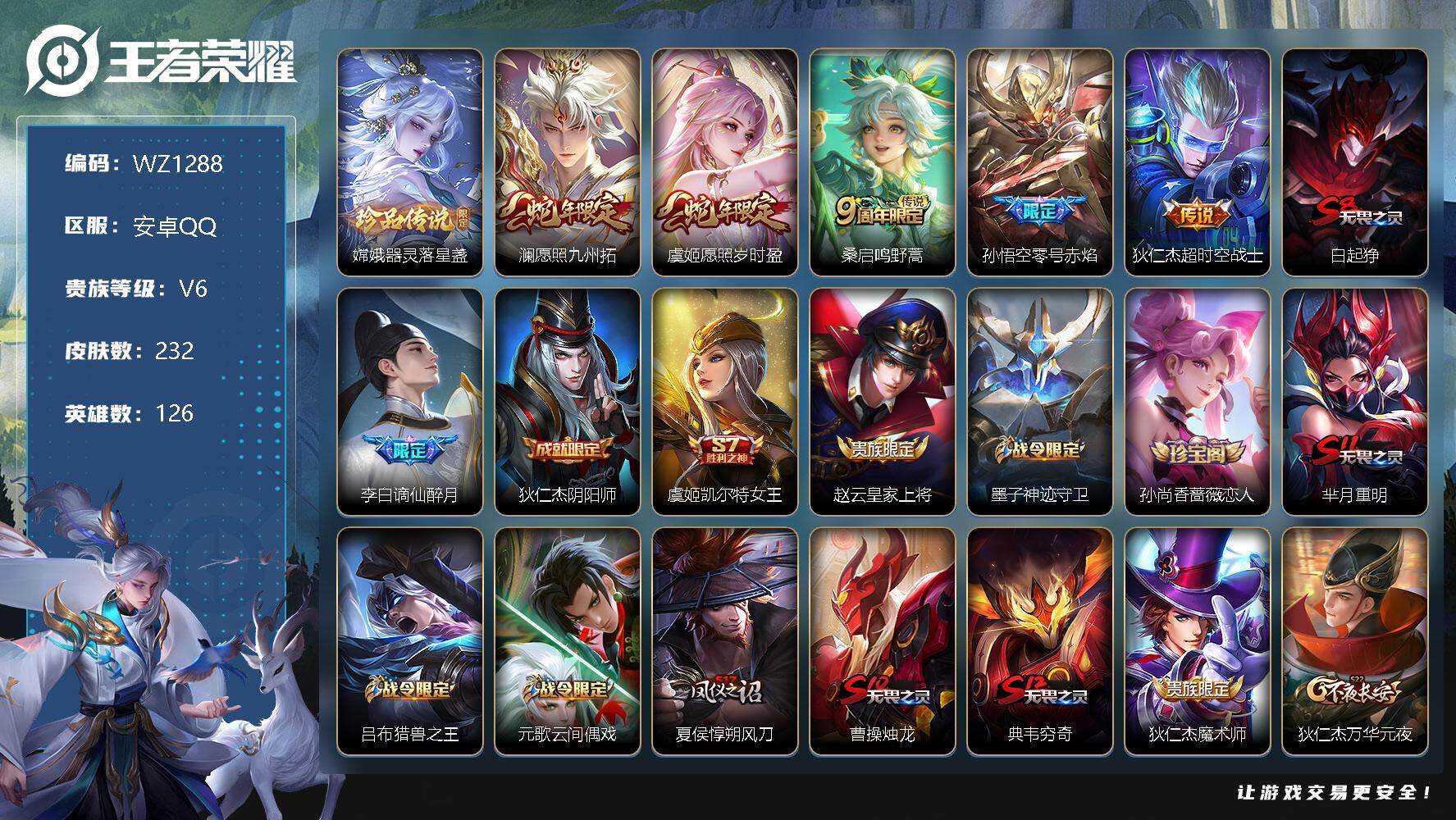 游戏区服:王者荣耀 / 安卓系统 / QQ账号