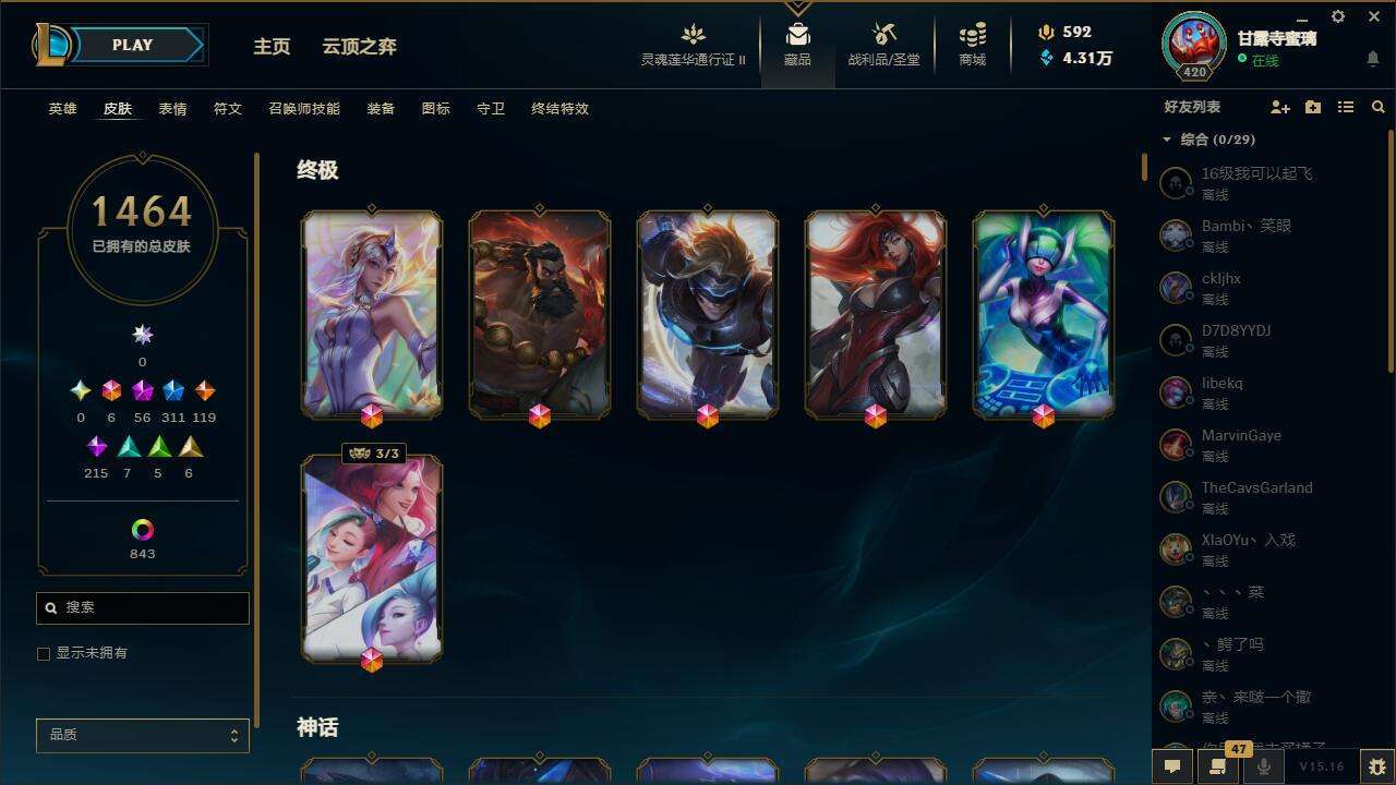【10910863】[12455091]【gpz_962307】 t25376【恕瑞玛】黑龙瞎 黄龙瞎 1464皮肤 873炫彩 19臻彩 56神话/311限定/119传说/170英雄 账号等级:420 云顶神话:11 单双排段位:不屈白银 【重要头像】至爱的鹿 爱意绵绵 爱情之歌 心型钥匙 觅心游侠卢锡安 觅心之翼奎因 雪花 大家伙 两仪无极 萨勒芬妮超级巨星 萨勒芬妮独立音乐人 春晖神女拉