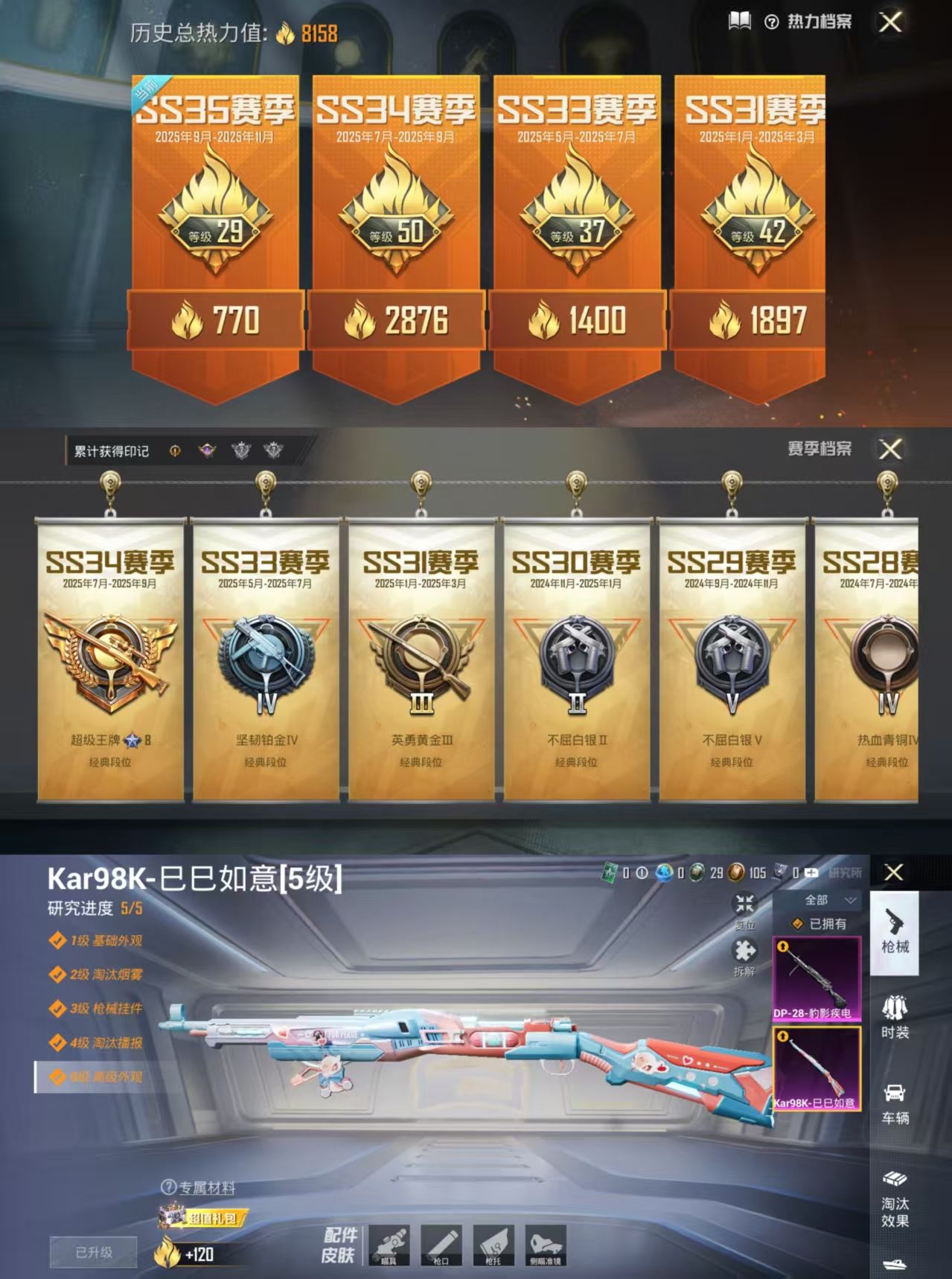 【10911824】[12448606]FK5026【2把满级特效枪-1王牌印记-AKM-绿洲时空-异域银装飞行器-地铁48点满天赋-素材号】可二次=安卓Q-2特效枪1热门29套装37枪皮 8158热力值 1印记 历史卓越王牌8星 【2特效枪】 Kar98K-巳巳如意 (5级) DP-28-豹影疾电 (5级) 【6热门】 破蛋小黄鸡 M416-蓝色火焰 游乐 街头风暴 元气之梦 香榭午后 SCA