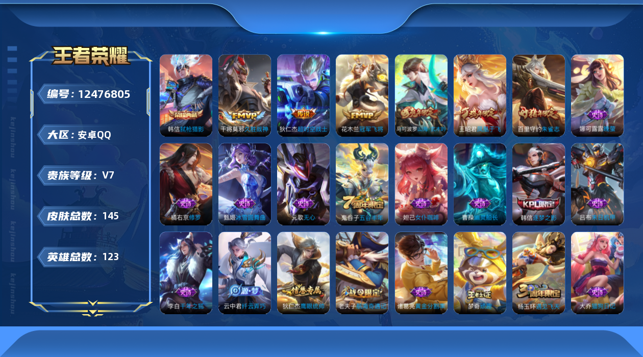 【10916281】【可二次】【QQ(安卓)】大漠名商 冠军飞将 鹰眼统帅 晚萤 遇见飞天 偶像歌手 圣诞恋歌 擒涛扼浪 圣诞狂欢 水果甜心 演武夺筹 绅士熊喵 驱傩正仪 逐梦之影 纤云弄巧 幽灵船长 弑枪猎影 海盐诗旅 乒乒小将 逐浪之夏 冰冠公主 修罗 女仆咖啡 金属风暴 超时空战士 凤凰于飞 古海寻踪 鬼剑武藏 无心 探海日记 千年之狐 魅力维加斯 五谷丰年 云中旅人 久胜战神 黄金分割率