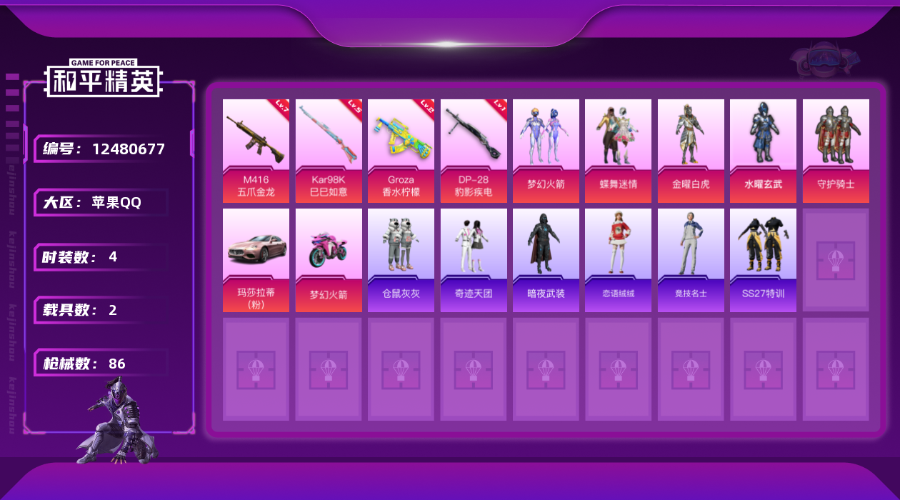 【10917100】【不可二次】【苹果QQ】双人摩托梦幻火箭 M416-五爪金龙 金曜白虎 水曜玄武 至尊龙雀飞行服 春暖花开飞行器 水耀玄武 梦幻火箭 仓鼠灰灰 M416-仓鼠灰灰 守护骑士 金耀白虎 玛莎拉蒂粉色 暗夜武装 蝶舞迷情 GROZA-香水柠檬 梦幻火箭飞行器 雪山精英