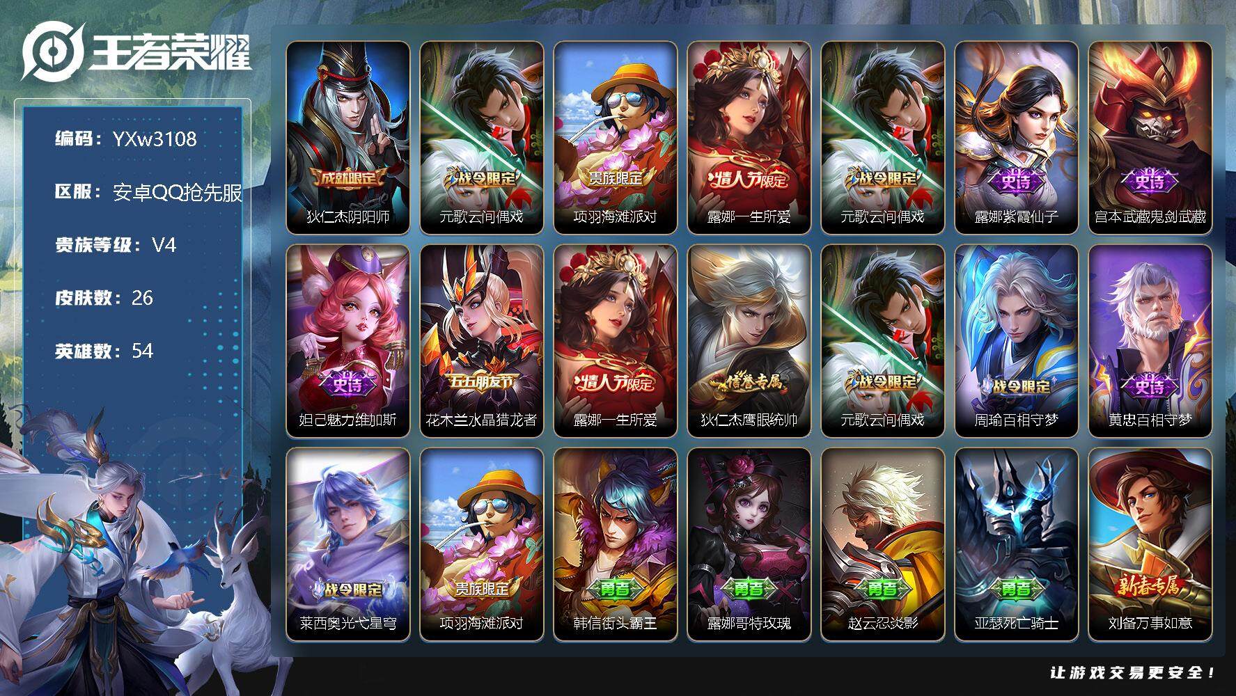 游戏区服:王者荣耀 / 安卓系统 / QQ账号