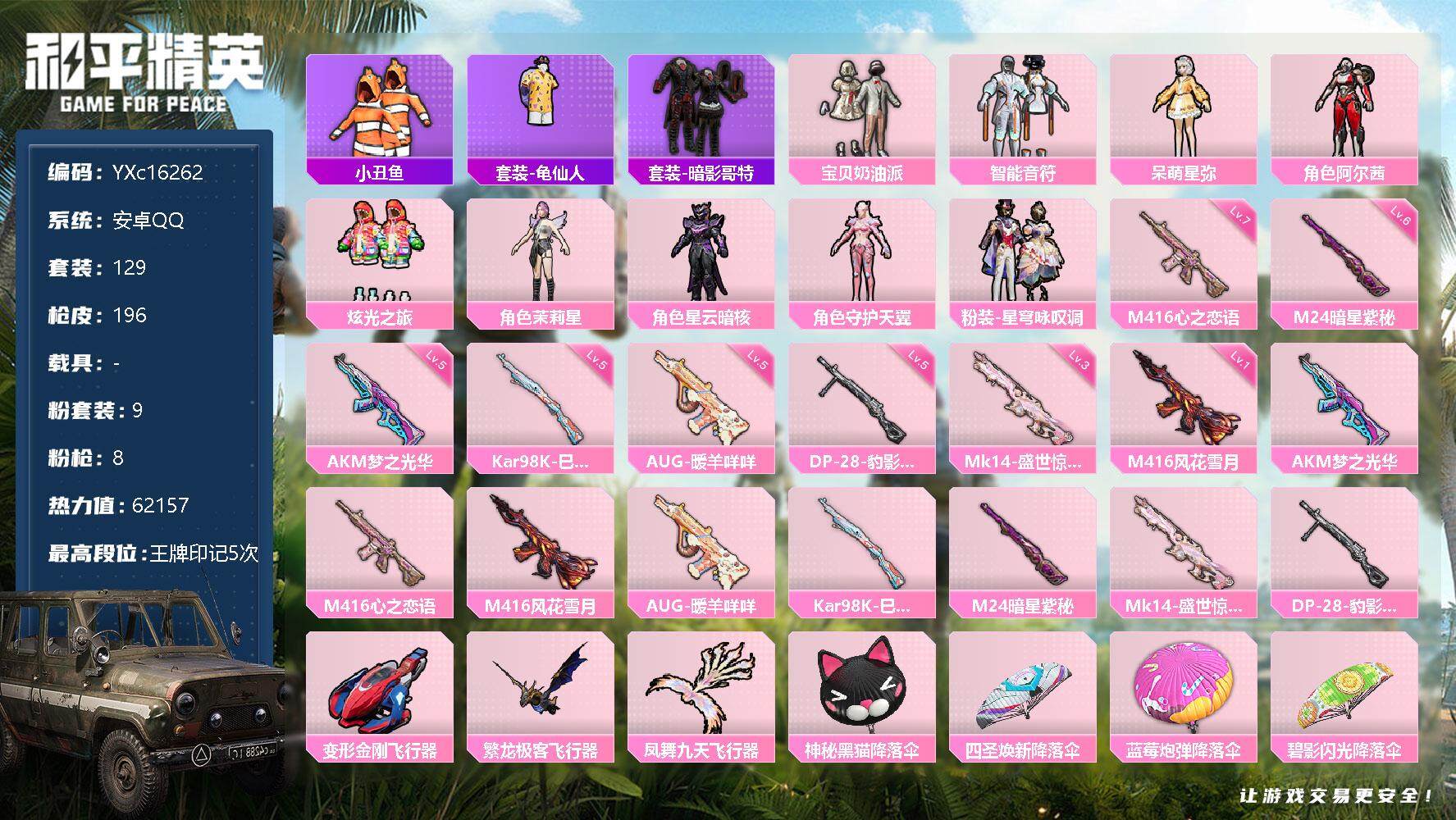 游戏区服:和平精英 / 安卓系统 / QQ账号