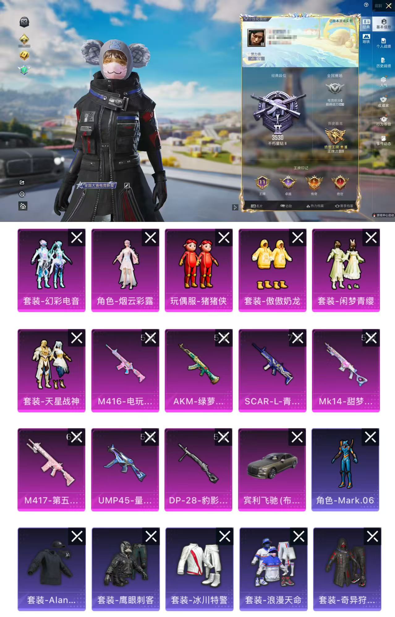 【10922341】【可二次】【安卓QQ】龟仙人 AKM-绿萝繁花 大橘为重 漫步者 奇异狩猎者 M24-奇异狩猎者 极速红龙 蓝螳螂 M762-奇异狩猎者 M416-电玩时刻 UMP45-量子极限 浪漫假日 M417-第五大道 浪漫天命 SCAR-L-青春物语 雪山精英 猪猪侠