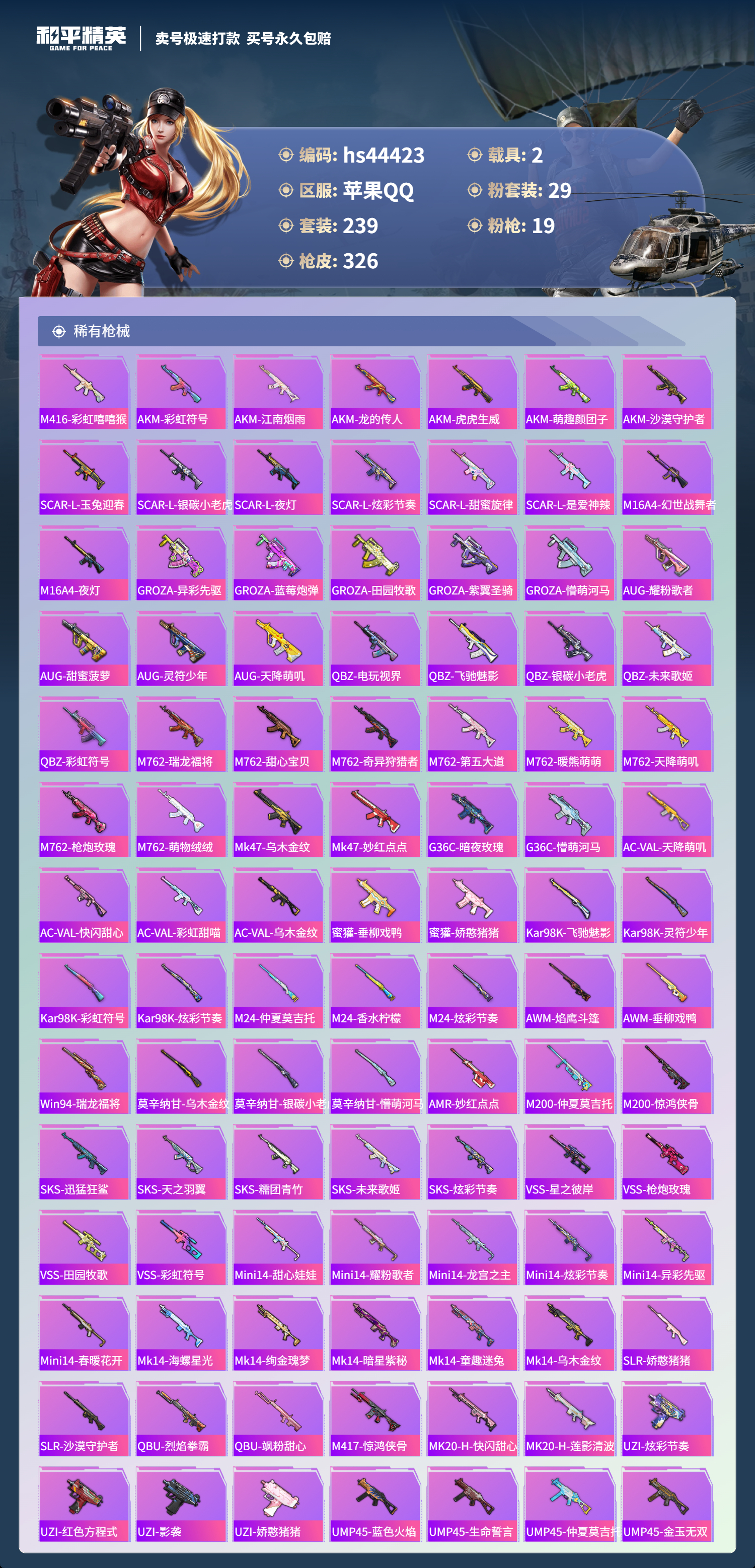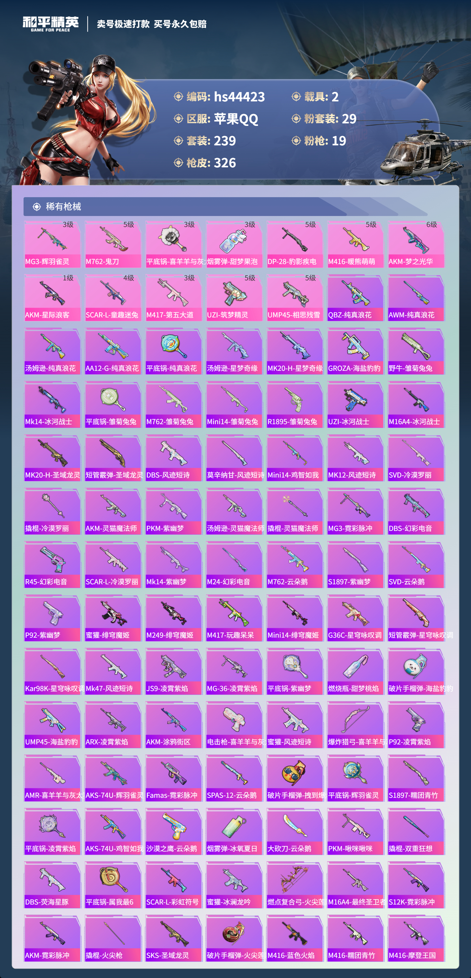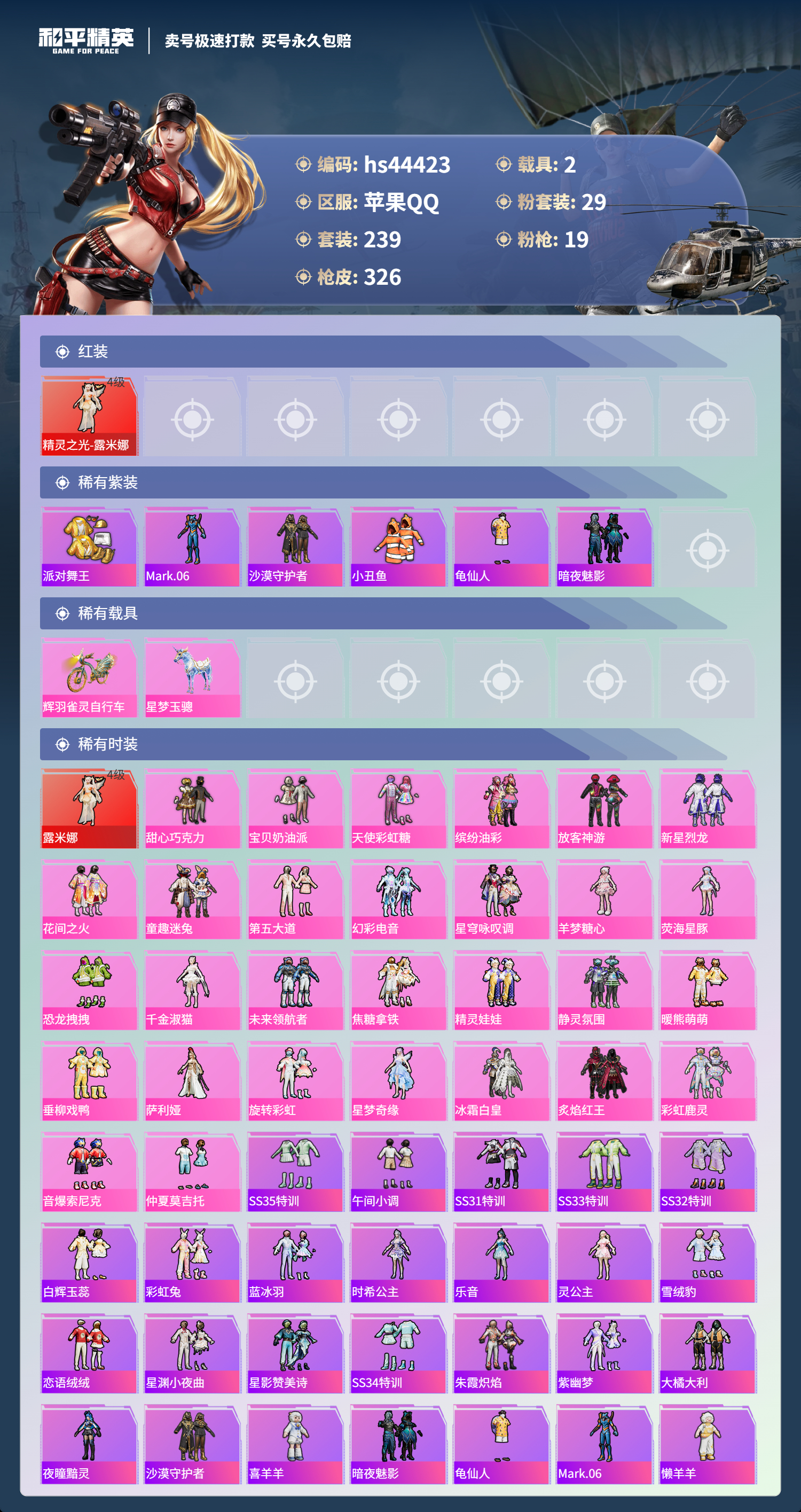 【10930162】【不可二次】【苹果QQ】龟仙人 恐龙拽拽 焦糖拿铁 AKM-星际浪客 花间之火 新星烈龙 炙焰红王 精灵之光-露米娜 M762-奇异狩猎者 放客神游 M416-暖熊萌萌 缤纷油彩 萌熊伴侣 M24-香水柠檬 SCAR-童趣迷兔 童趣迷兔 瑞龙福将 沙漠守护者 纯梦嫁纱飞行翼 团圆交子 红熊茄茄 星梦玉骢 M762-瑞龙福将 齐天大圣飞行器 甜心巧克力 M417射手步枪 龙翔九