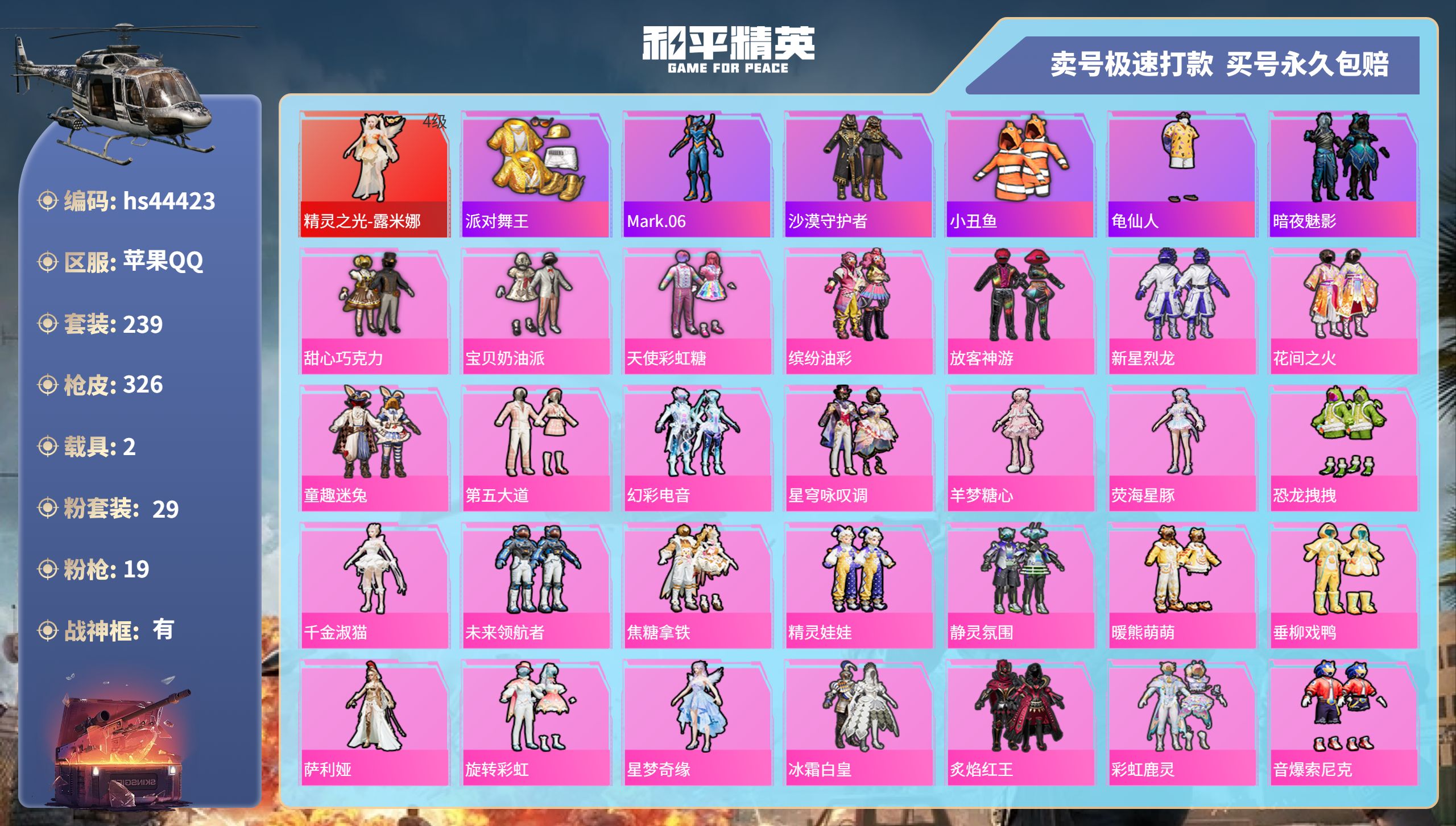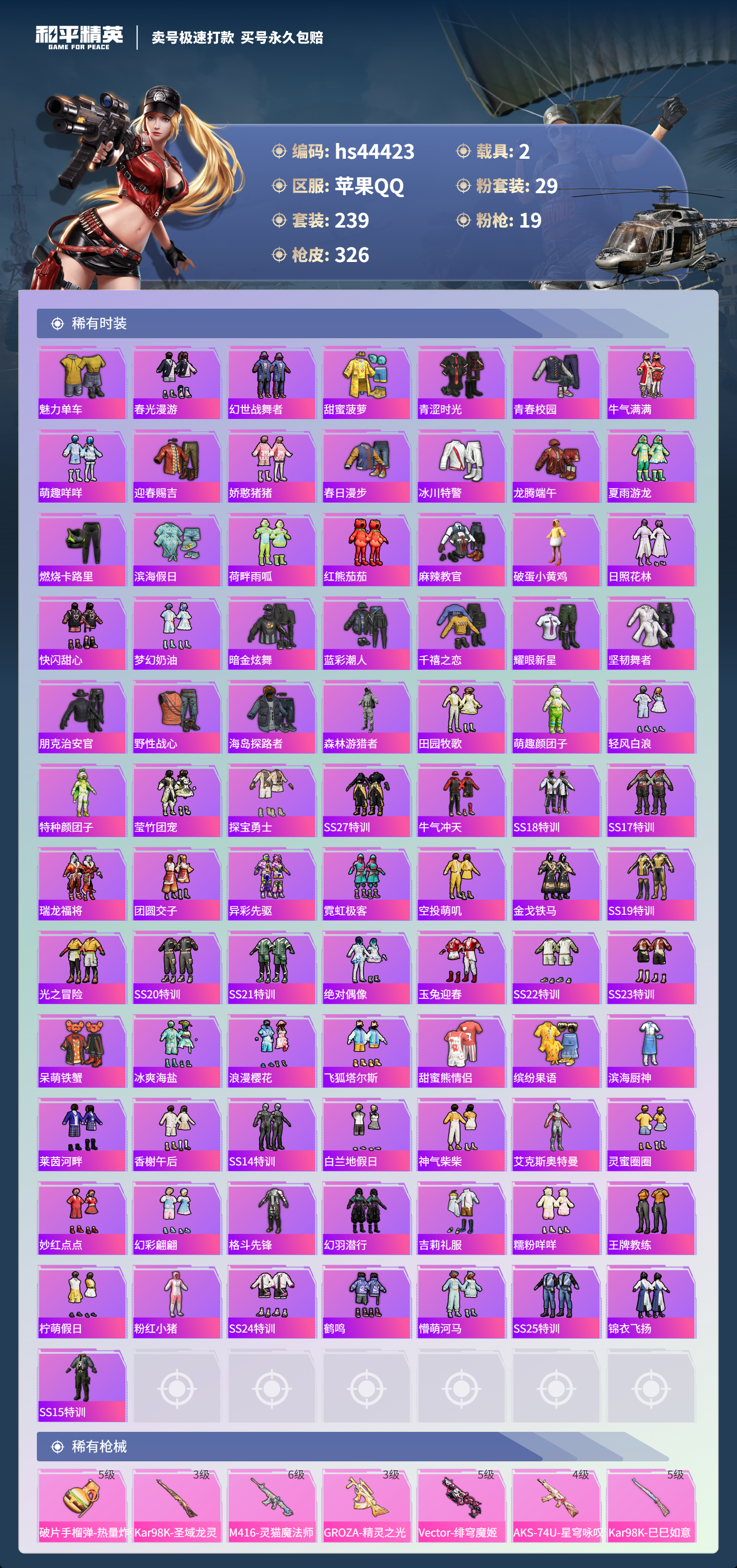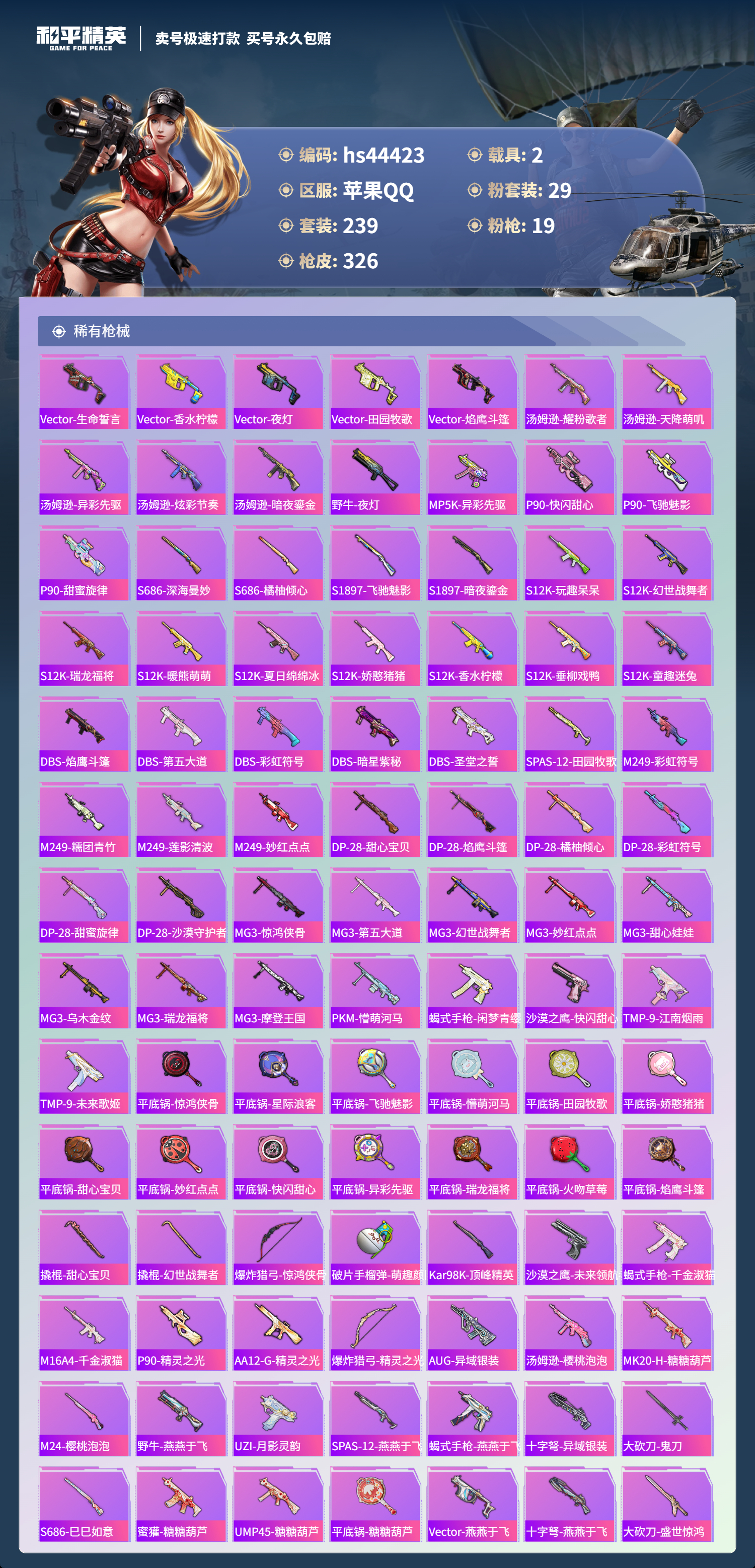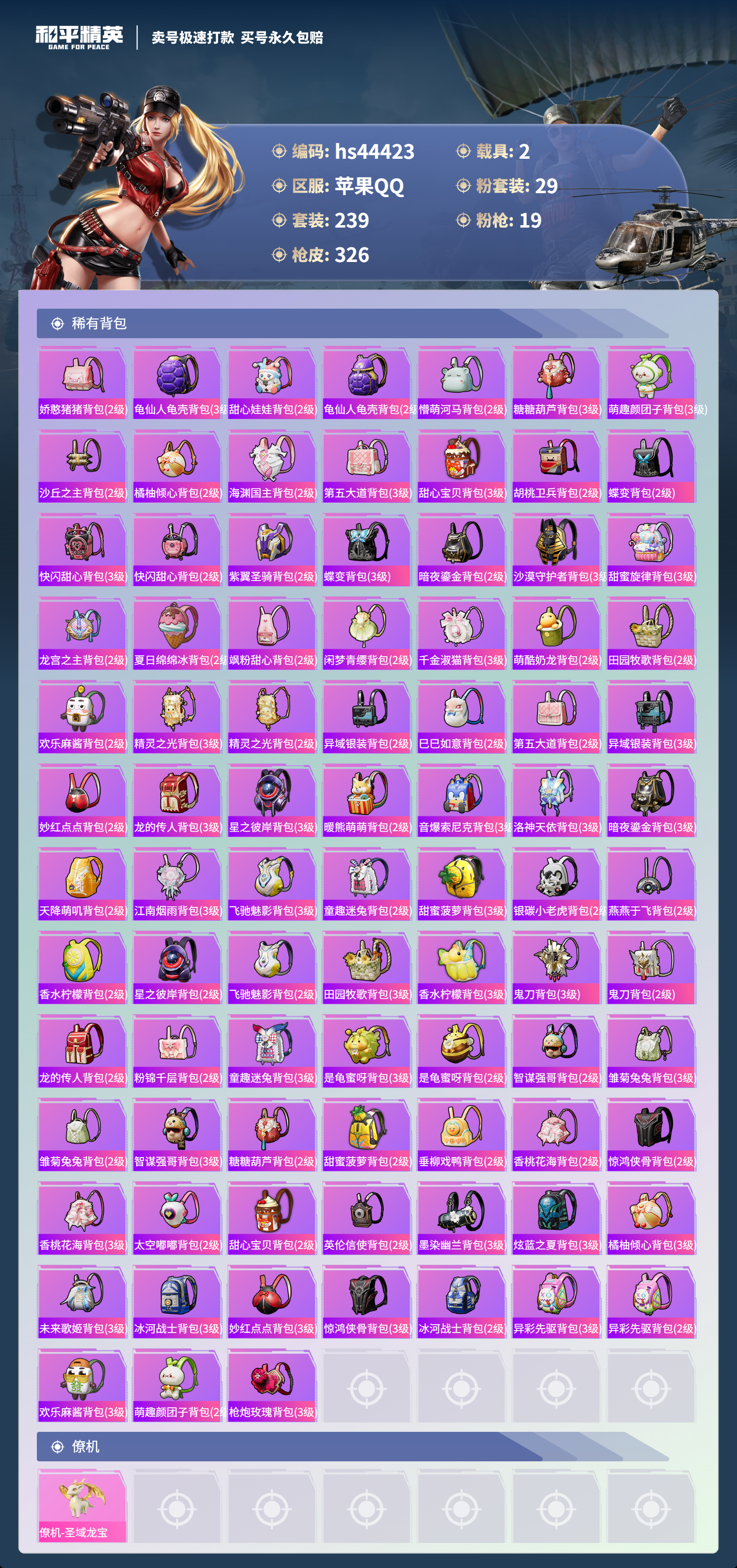【10930162】【不可二次】【苹果QQ】龟仙人 恐龙拽拽 焦糖拿铁 AKM-星际浪客 花间之火 新星烈龙 炙焰红王 精灵之光-露米娜 M762-奇异狩猎者 放客神游 M416-暖熊萌萌 缤纷油彩 萌熊伴侣 M24-香水柠檬 SCAR-童趣迷兔 童趣迷兔 瑞龙福将 沙漠守护者 纯梦嫁纱飞行翼 团圆交子 红熊茄茄 星梦玉骢 M762-瑞龙福将 齐天大圣飞行器 甜心巧克力 M417射手步枪 龙翔九