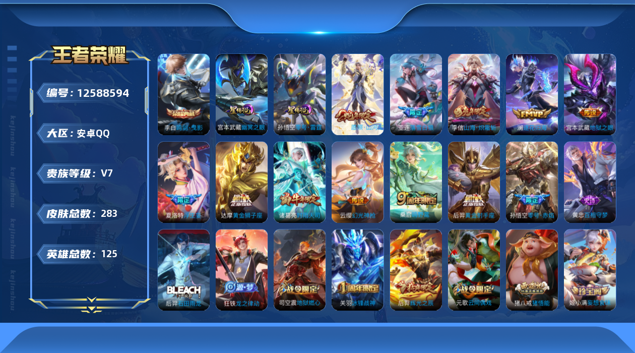游戏区服:王者荣耀 / 安卓系统 / QQ账号