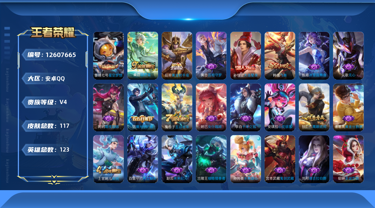 【10945923】【可二次】【QQ(安卓)】御旌 弈星混沌棋 大漠名商 大圣娶亲 鹰眼统帅 原初探秘者 圣诞恋歌 擒涛扼浪 星空梦想 心灵骇客 水果甜心 沙漠行僧 演武夺筹 暗夜猫娘 绅士熊喵 御霄 驱傩正仪 烛龙 飞衡 朔风刀 海盐诗旅 万华元夜 御狮 御銮 特工魅影 暗隐猎兽者 女仆咖啡 疑决卦 德古拉伯爵 黄金射手座 饕餮 古海寻踪 鬼剑武藏 无心 狰 梁祝 重明 千年之狐 魅力维加斯