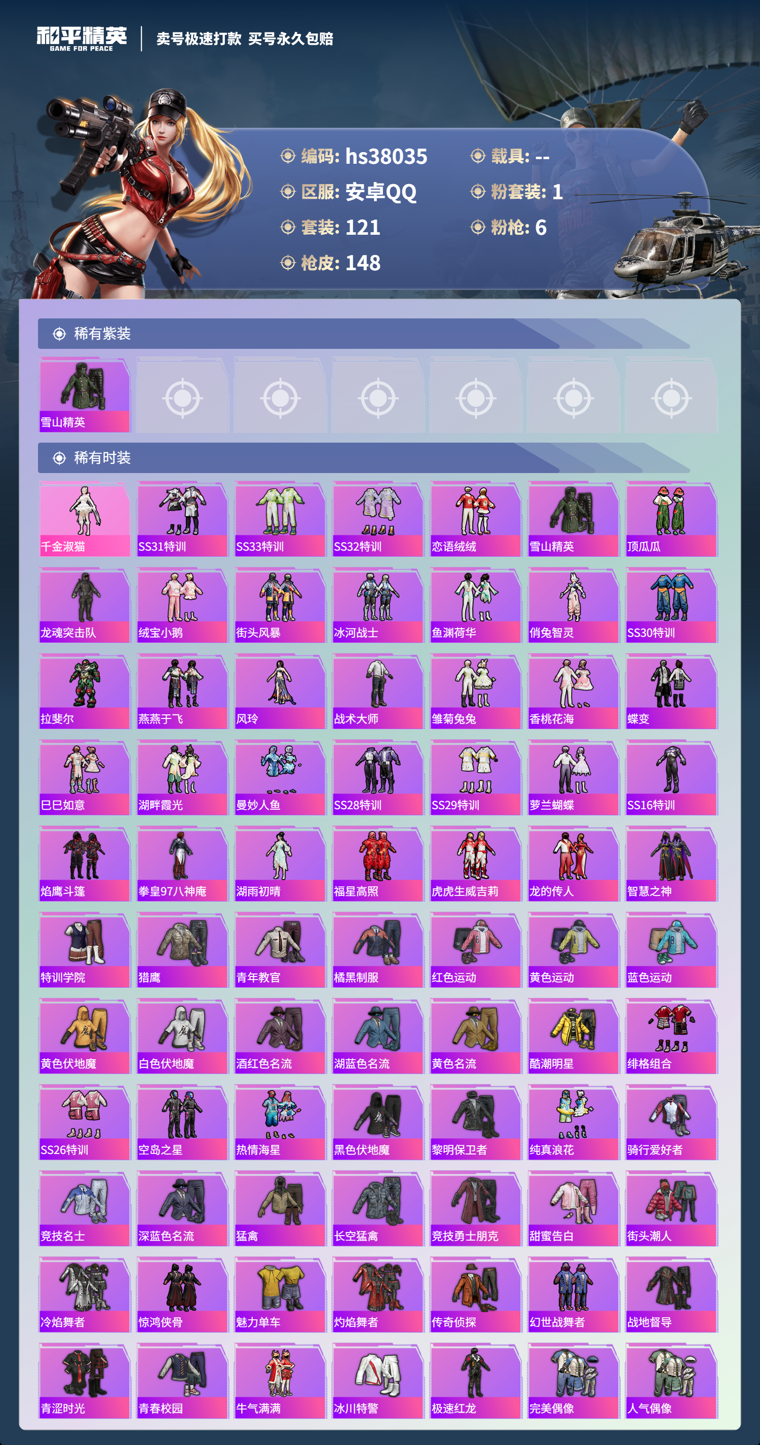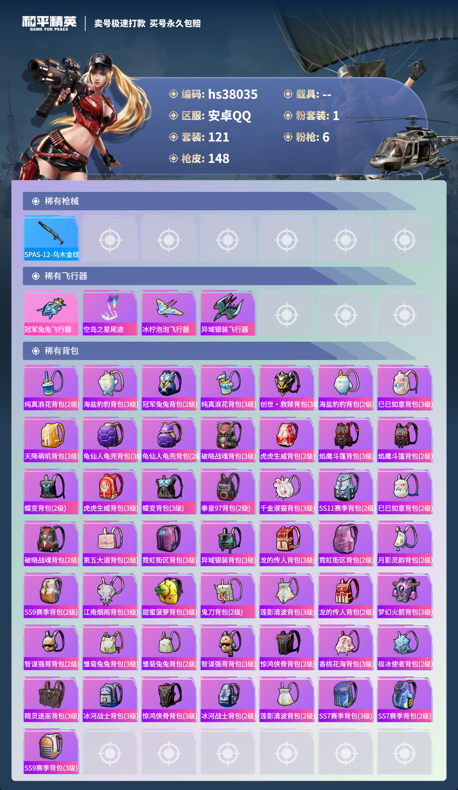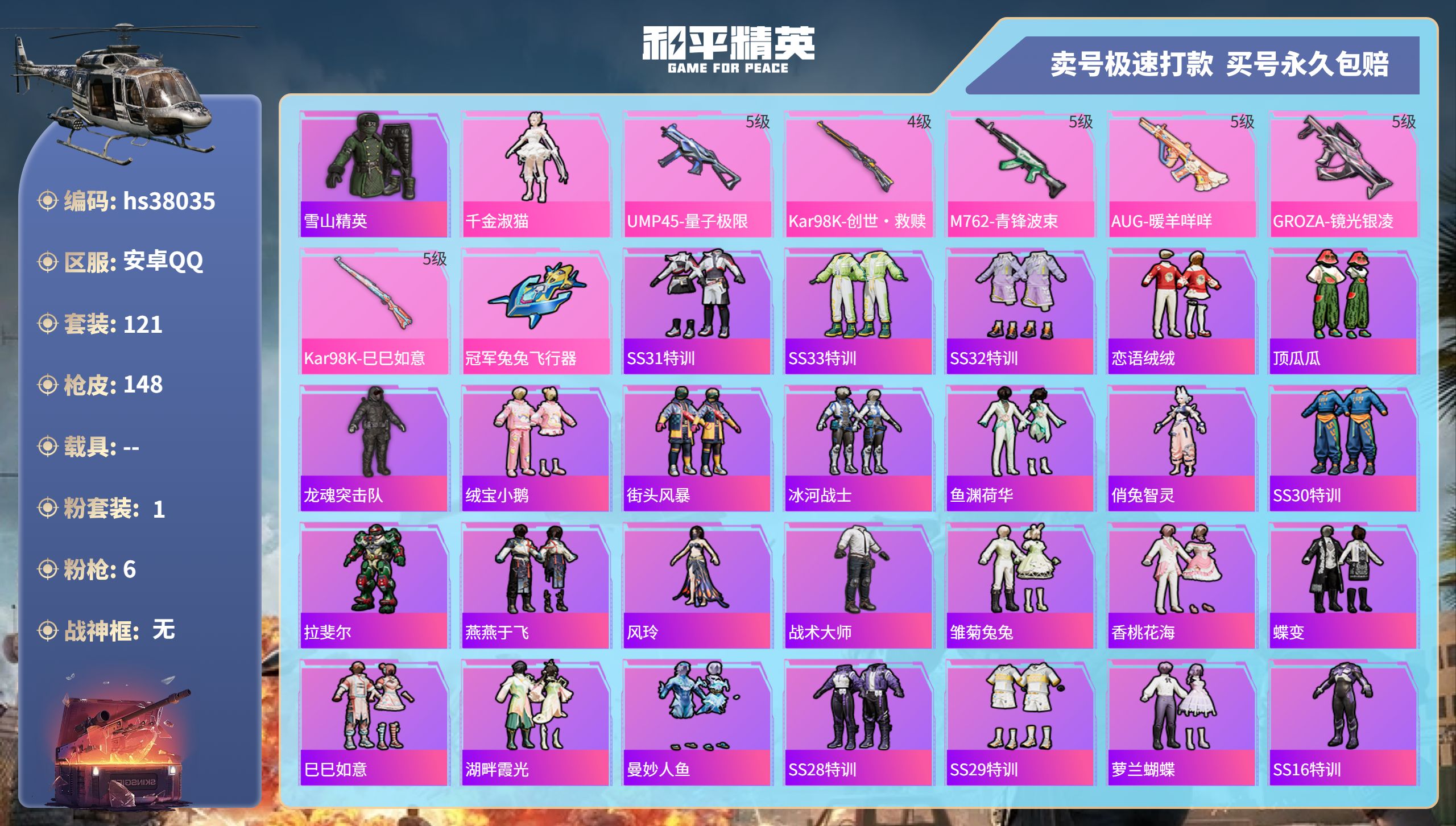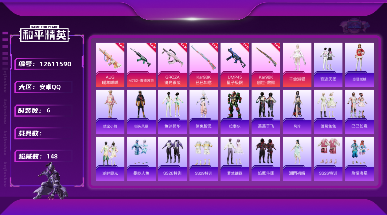 游戏区服:和平精英 / 安卓系统 / QQ账号