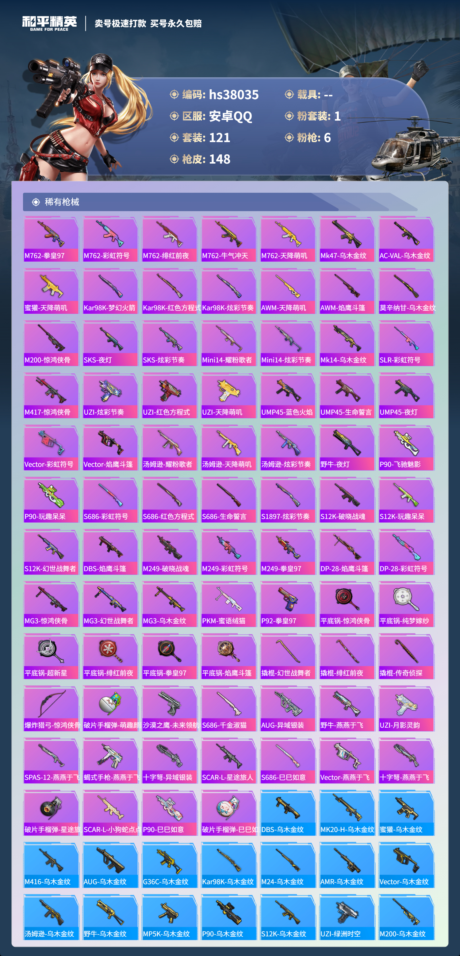 【10946651】【可二次】【安卓QQ】M762-青锋波束 UMP45-量子极限 极速红龙 雪山精英