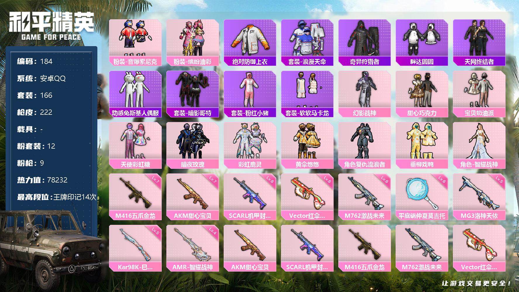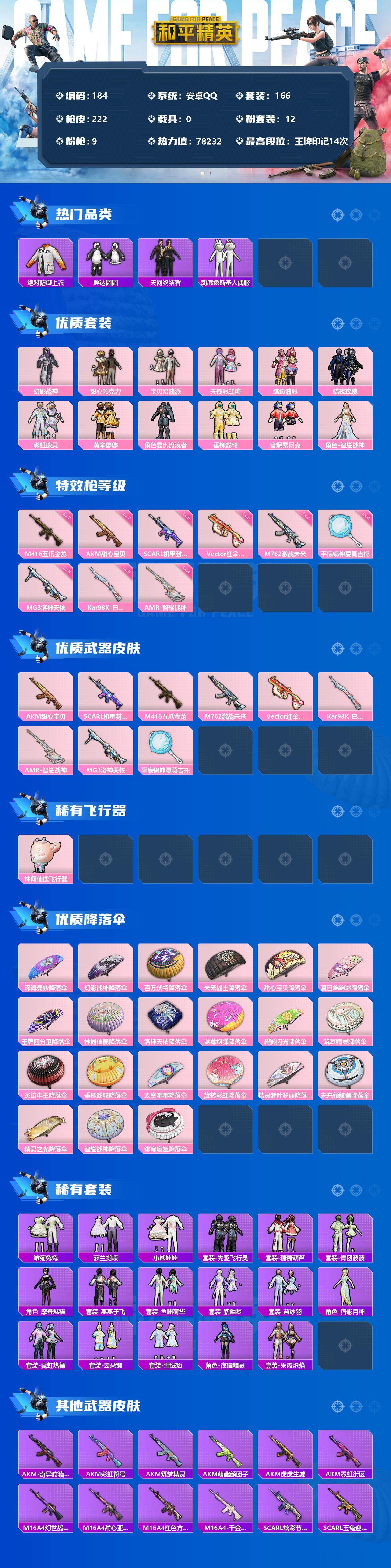 游戏区服:和平精英 / 安卓系统 / QQ账号