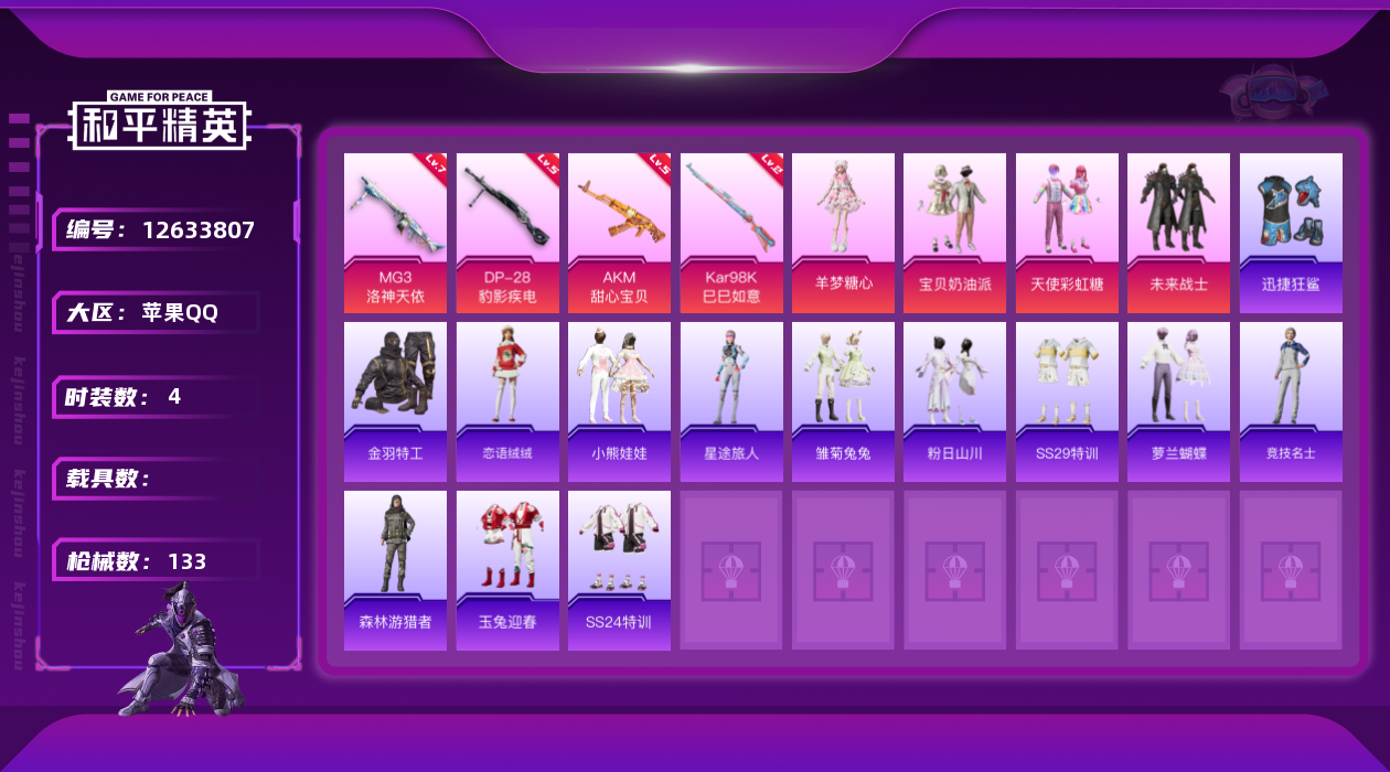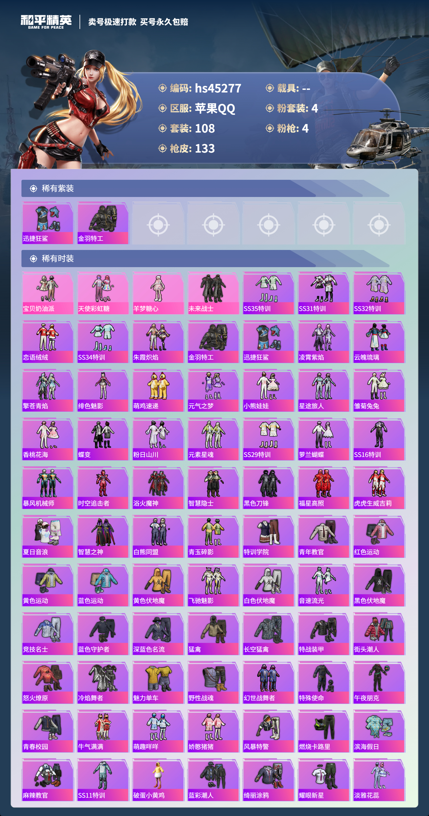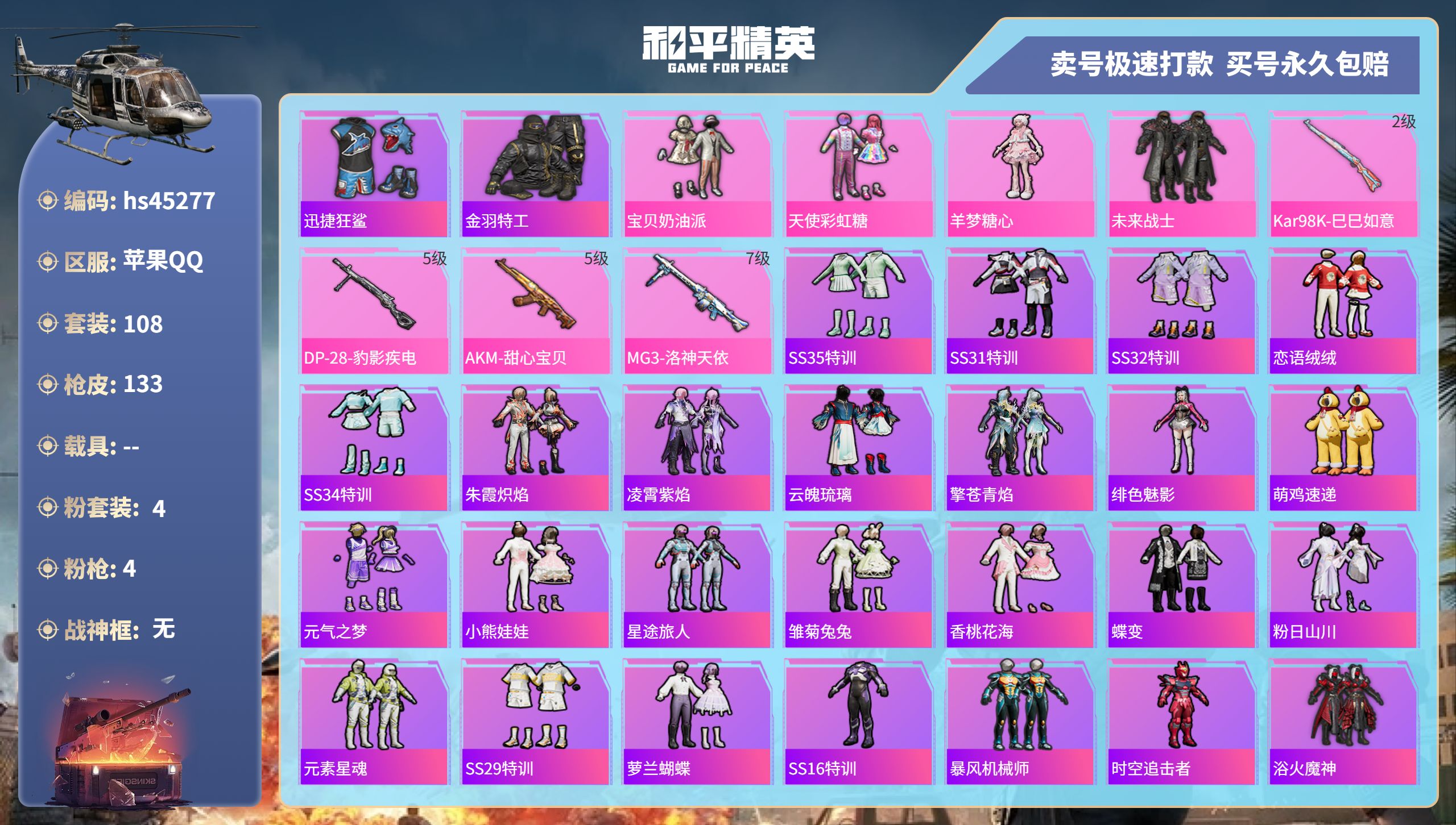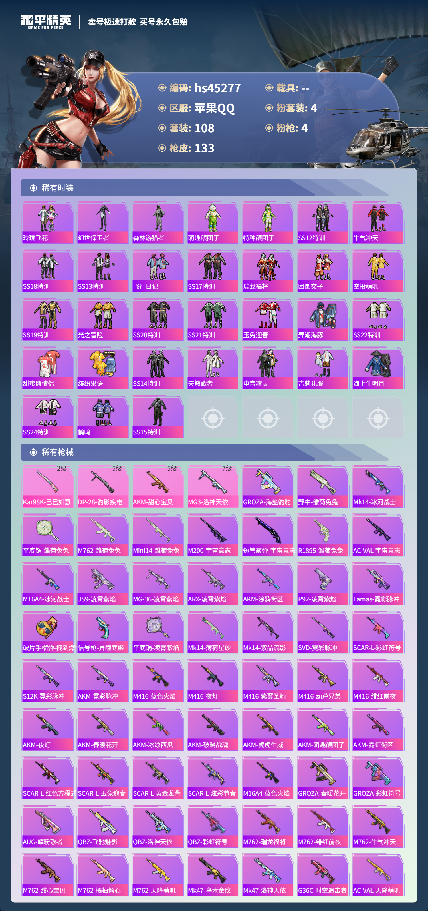 游戏区服:和平精英 / 苹果系统 / QQ帐号