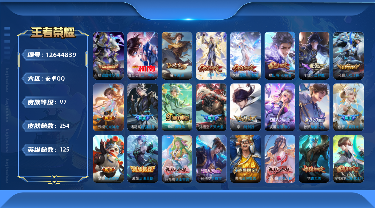 游戏区服:王者荣耀 / 安卓系统 / QQ账号
