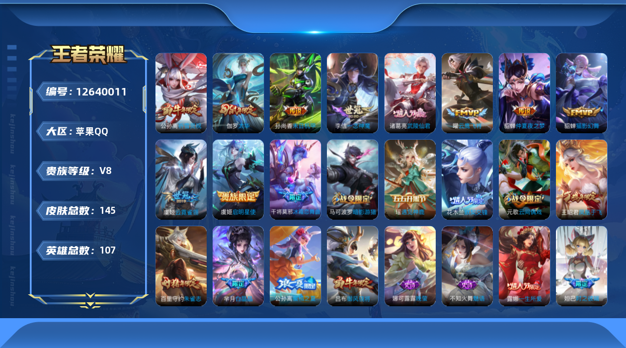 【10957606】【可二次】【QQ(苹果)】霸王丸 乱世虎臣 鹰眼统帅 水晶猎龙者 晚萤 原初探秘者 圣诞恋歌 命运角斗场 沙漠行僧 紫霞仙子 烛龙 逐梦之音 仲夏夜之梦 龙腾万里 精灵王 缤纷独角兽 灼热之刃 万华元夜 异域舞娘 东海龙王 御銮 孤猎 特工魅影 醍醐杖 修竹墨客 丁香结 炼金王 阴阳师 云霓雀翎 唤灵魅影 踏雪寻梅 露花倒影 兔女郎 白晶晶 云鹰飞将 海滩派对 蔷薇王座 瑞麟