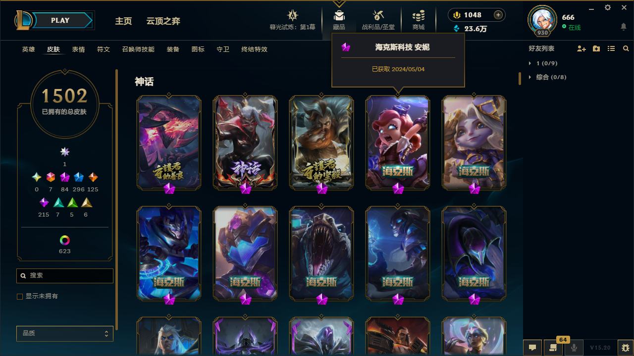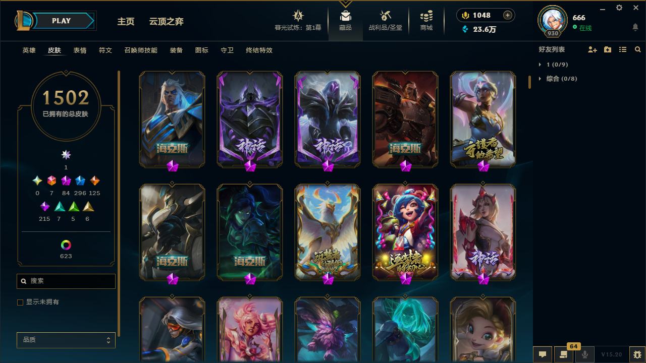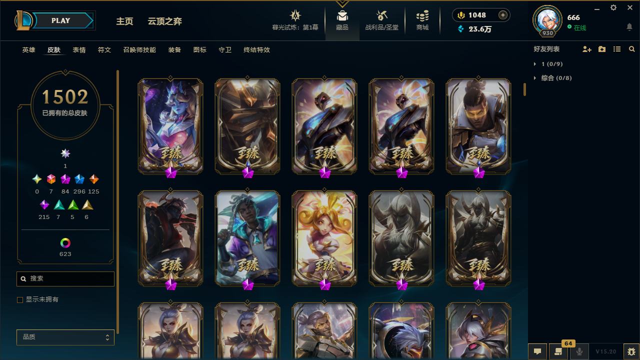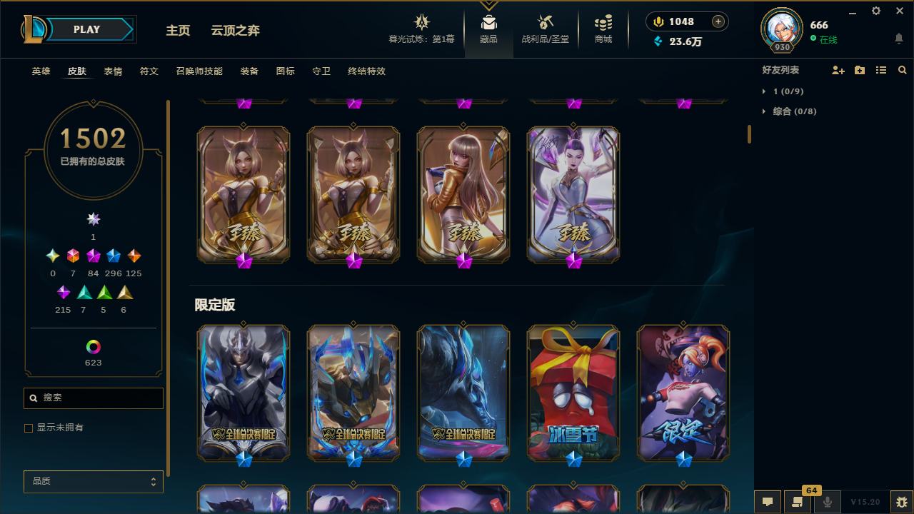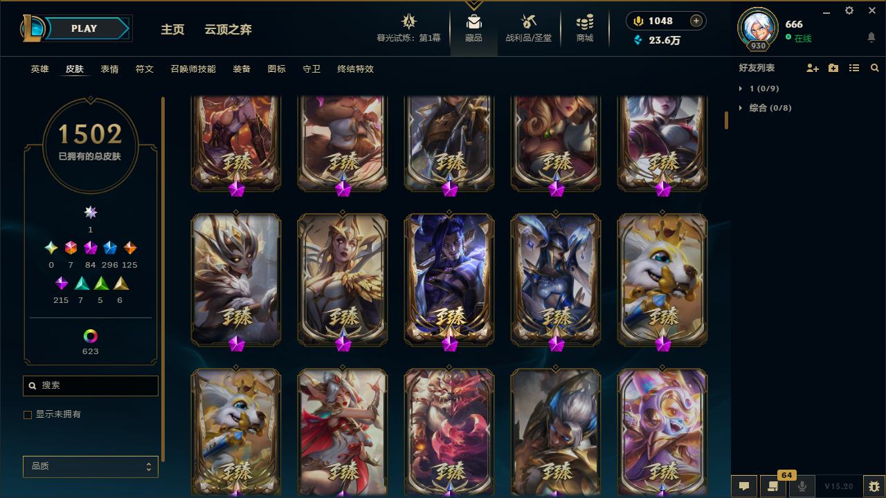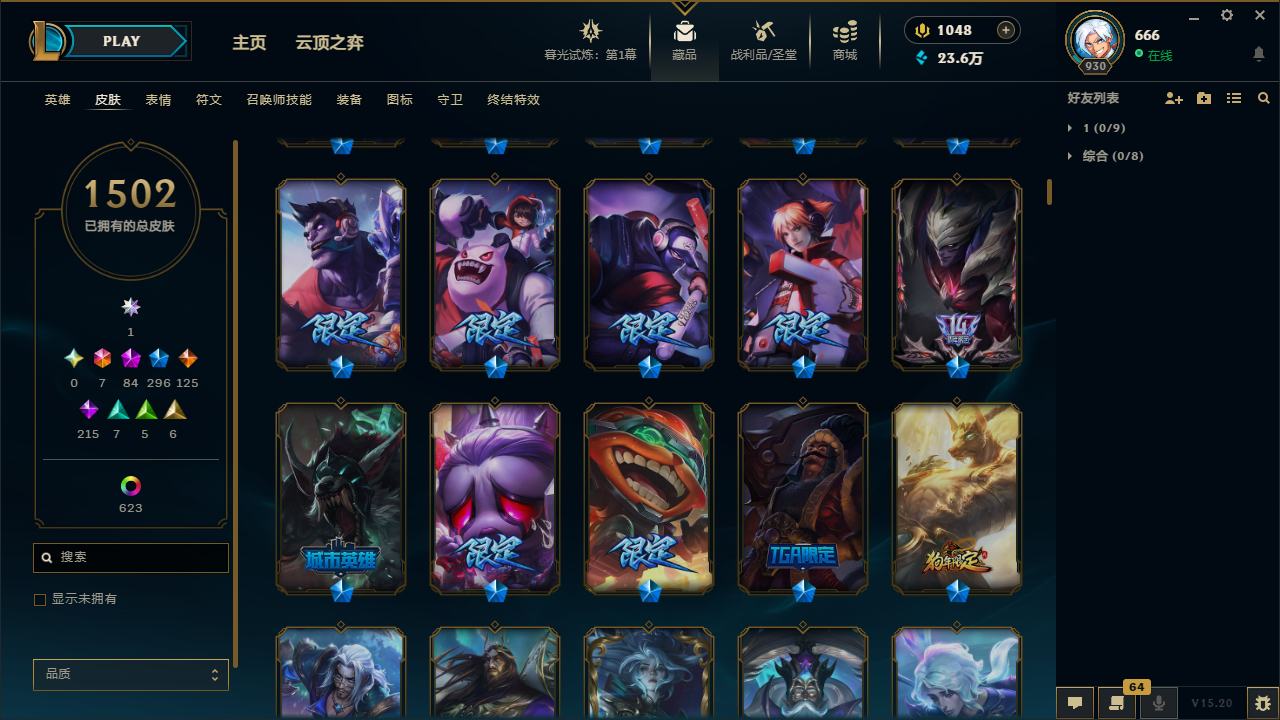 【10957974】[12664722]龙的传人!+臻彩潜龙勿用!EDG冠军限定一套!云顶神话夜月幻龙小小亚索!E12143.比尔吉沃特1502皮1档卡莎 1卓越7终极84神话296限定49臻彩523炫彩.