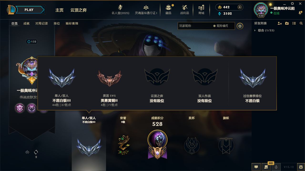 游戏区服:英雄联盟 / 网通 / 弗雷尔卓德