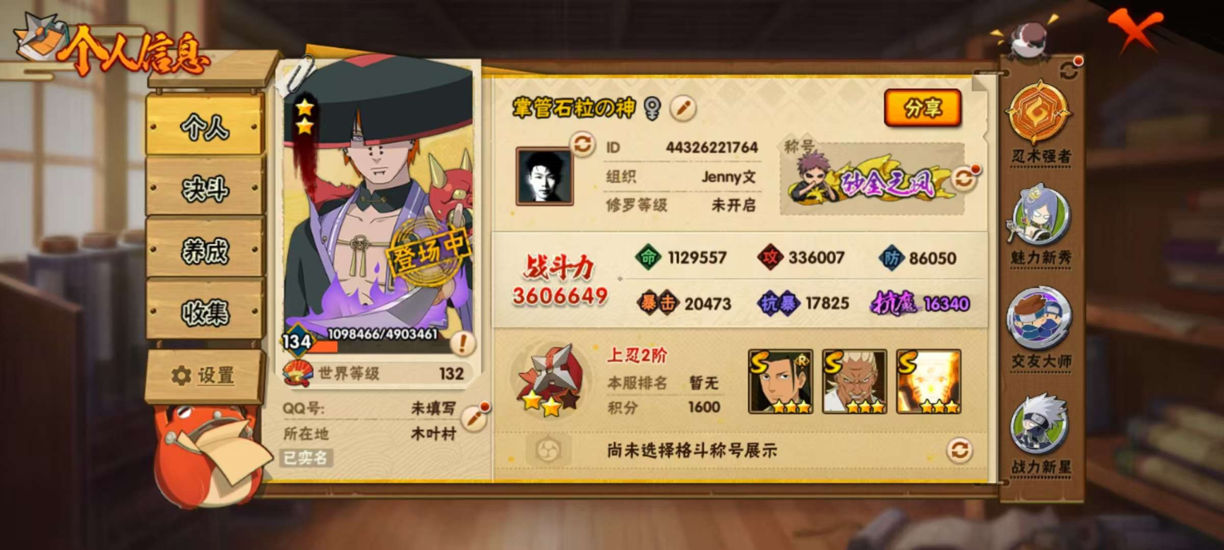 游戏区服:火影忍者(手游) / 安卓系统 / 安卓账号