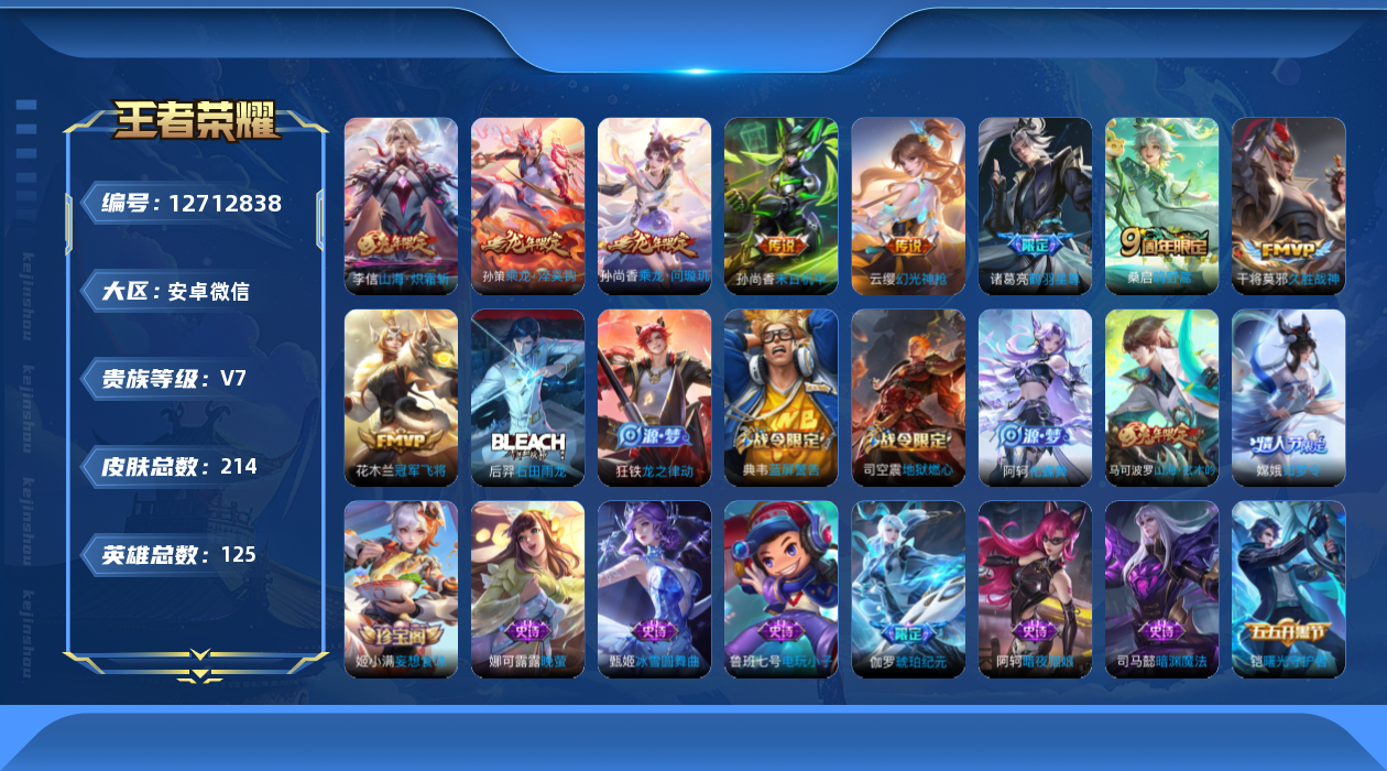 【10969169】【可二次】【微信(安卓)】星界游侠 乱世虎臣 暗影游猎 鹰眼统帅 水晶猎龙者 永昼 圣诞恋歌 紫霞仙子 月团寄思 仲夏夜之梦 缤纷独角兽 修罗 特工魅影 诗剑行 德古拉伯爵 江河有灵 古海寻踪 时之恋人 电玩小子 荣光圣徽 魅力维加斯 久胜战神 云鹰飞将 箭羽风息 神器·万象笔 驭风魔法 青焰无极 冠军飞将 乘风破浪 无双飞将 埋骨钱 擒涛扼浪 天秀·启明 圣诞狂欢 绅士熊喵