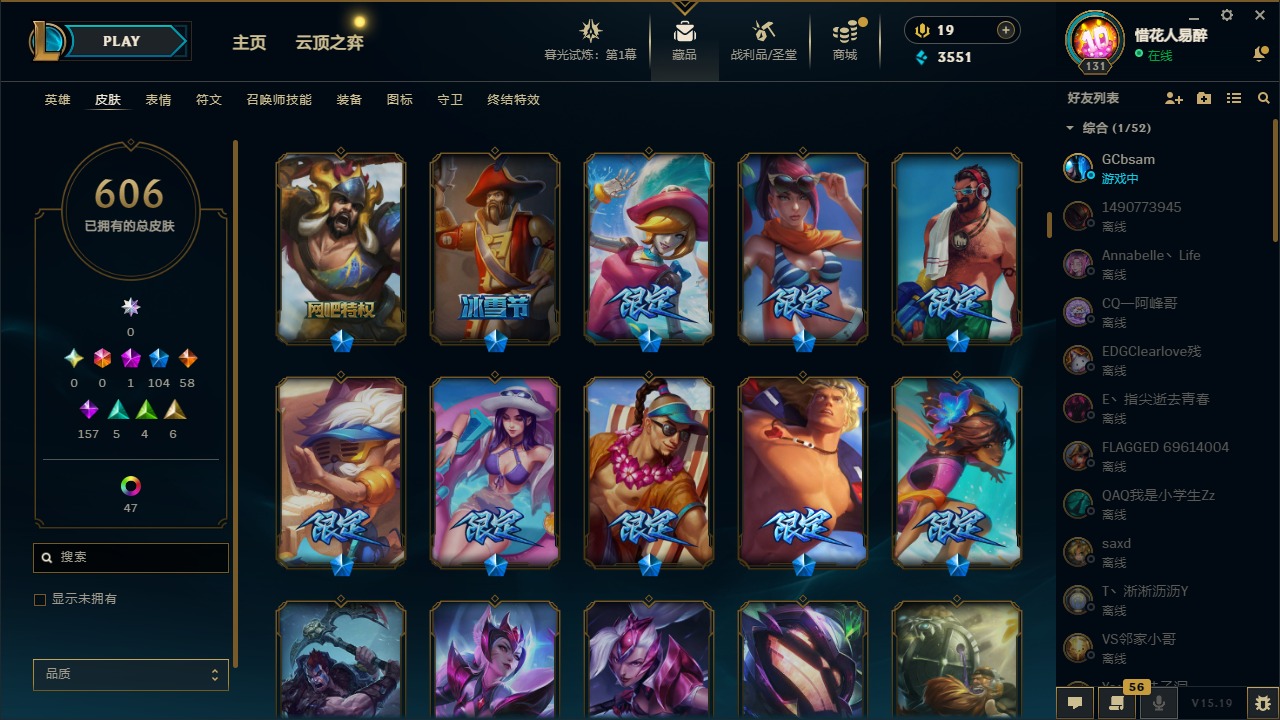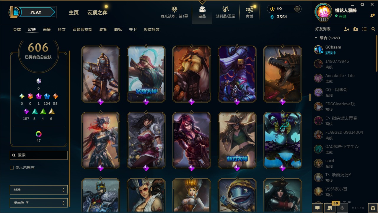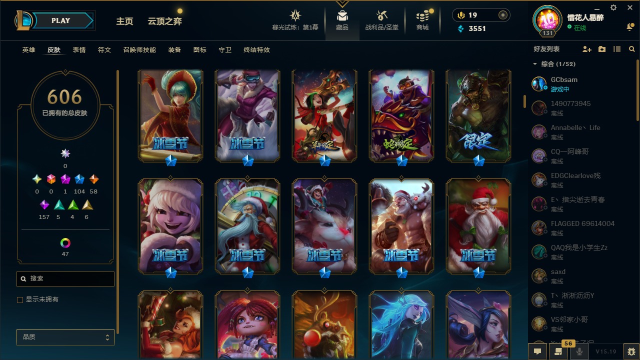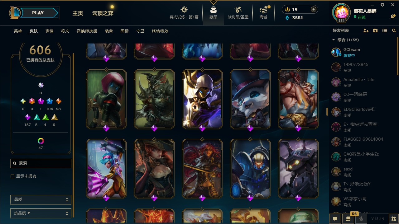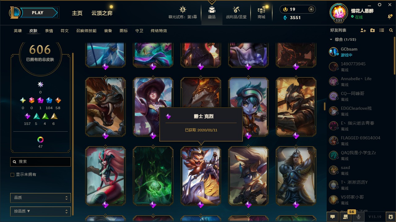 【10975014】[12732429]1神话 104限定 58传说 157史诗 606皮肤 54炫彩 153英雄 可二次 可修改实名 【限定】:哥特萝莉 安妮,生化领主 泰达米尔 【情人节限定】:觅心女王 艾希,觅心游侠 卢锡安,甜心之羽 霞 【冠军限定系列】:S1FNC 酒桶,S1FNC 迦娜,S1FNC 嘉文四世,S1FNC 卡尔萨斯,S1FNC 库奇,S2 暗杀星 蒙多,S2 暗杀星