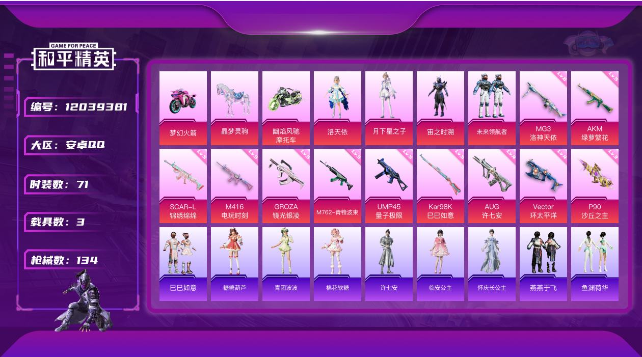 游戏区服:和平精英 / 安卓系统 / QQ账号