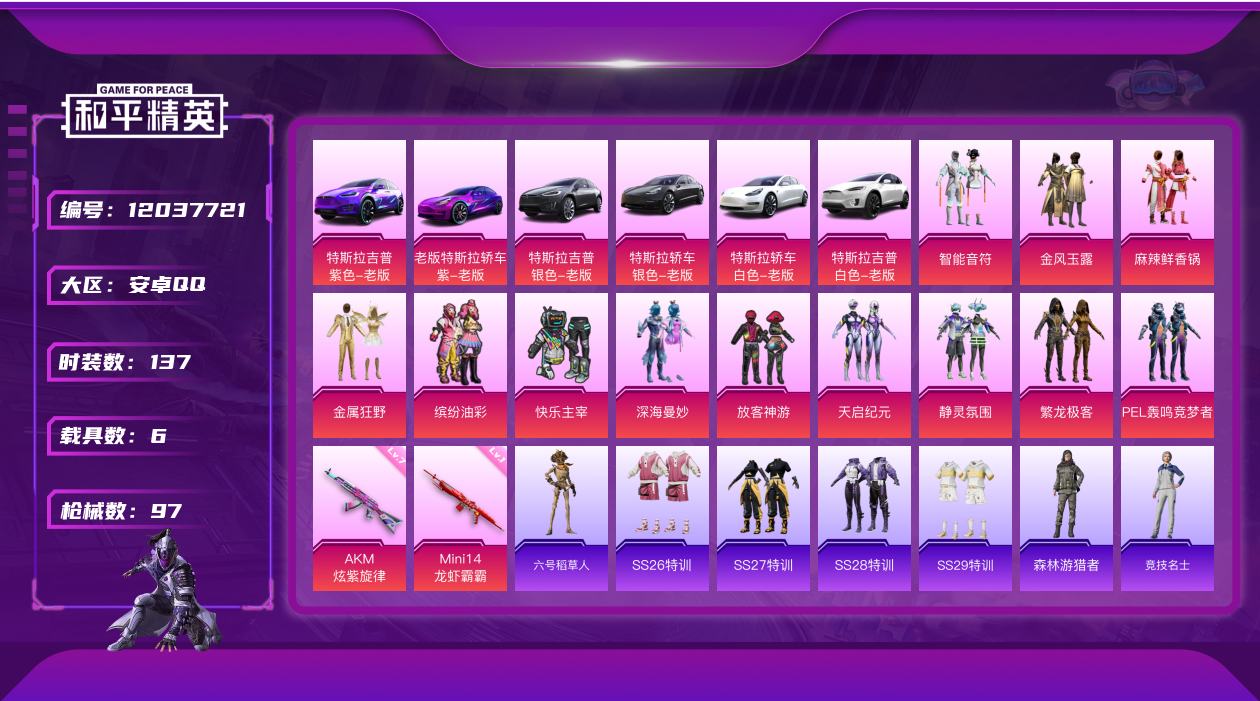 【10991649】【可二次】【安卓QQ】深海曼妙 特斯拉3银色 特斯拉X白色 金属狂野 天启纪元 AKM-炫紫旋律 放客神游 快乐主宰 金风玉露 Mini14-龙虾霸霸 静灵氛围 特斯拉X银色 特斯拉3紫色 麻辣鲜香锅 缤纷油彩 PEL轰鸣竞梦者 智能音符 特斯拉X紫色