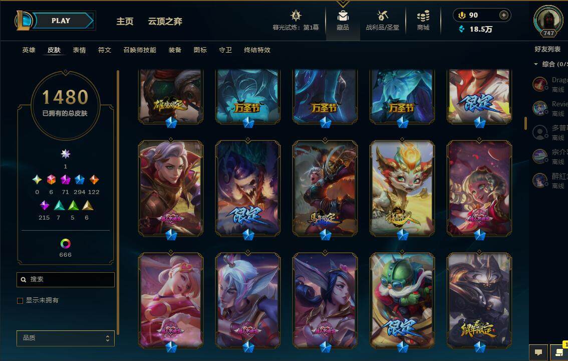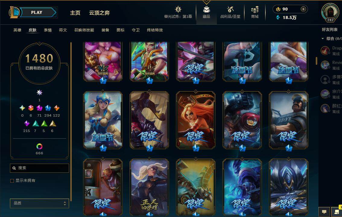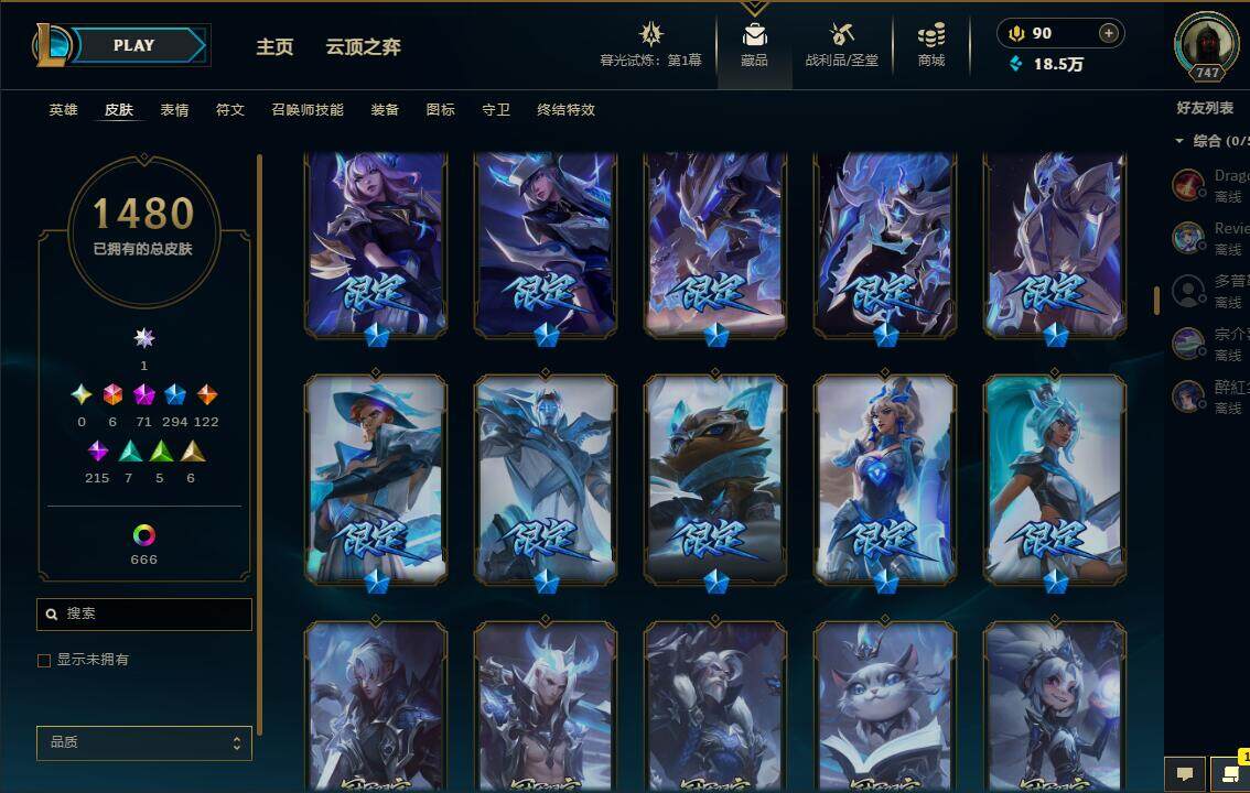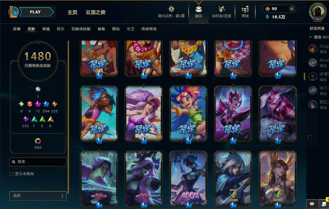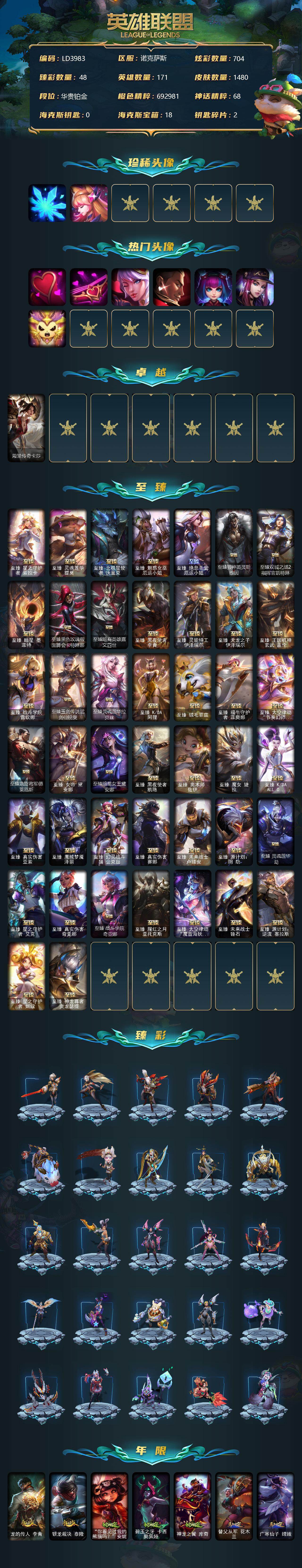 【10993041】【LD3983】171英雄/1480皮肤/8终极/71神话/294限定/48臻彩/704炫彩/122传说/215史诗/铂金账号等级:747/雪花/星守阿狸/爱意绵绵/爱情之歌/觅心之翼奎因/觅心游侠卢锡安/银河魔装机神安妮/KDA阿卡丽头像/星守索拉卡/殿堂传奇卡莎/至臻星之守护者索拉卡/至臻灵魂莲华提莫/至臻北极星使者沃里克/至臻魅惑女巫厄运小姐/至臻绝息圣堂厄运小姐/至臻