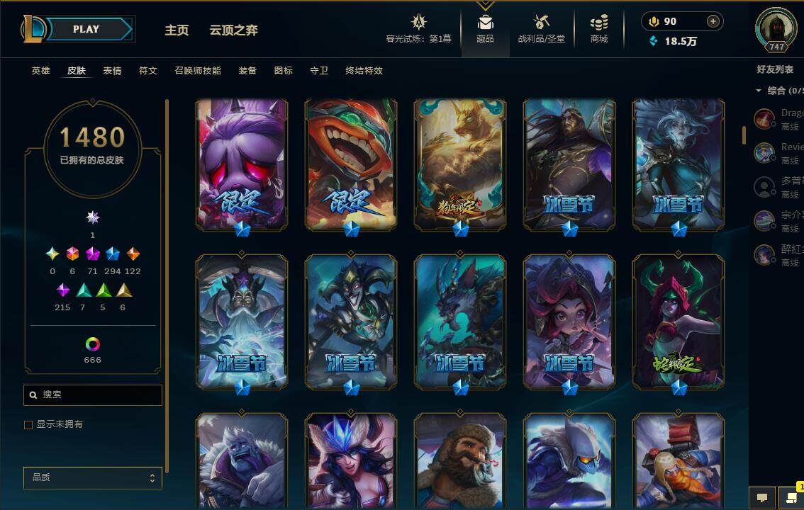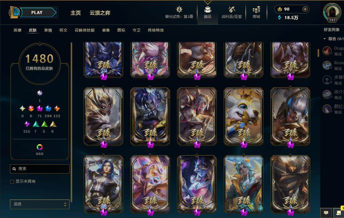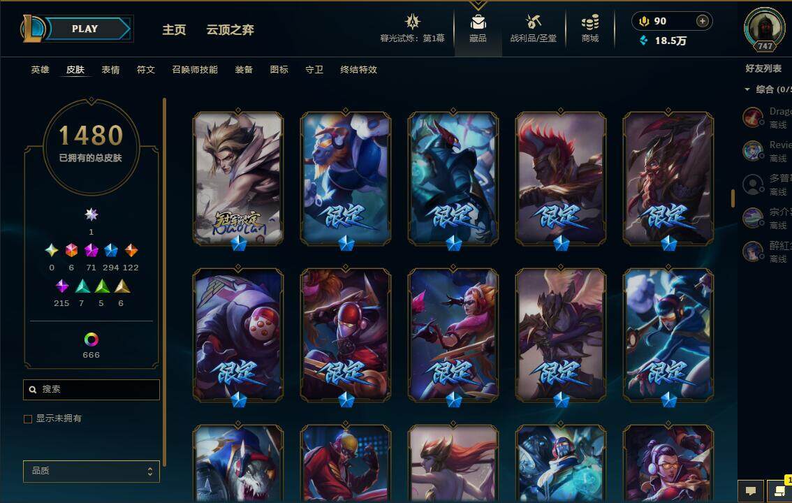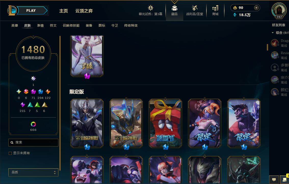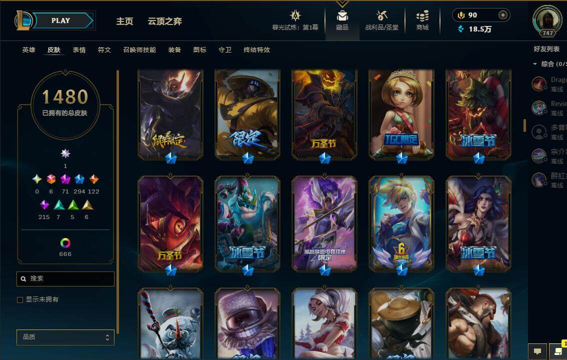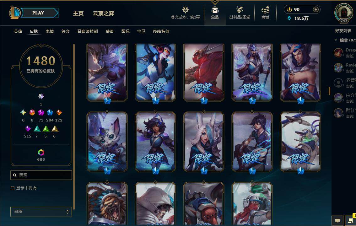 【10993041】【LD3983】171英雄/1480皮肤/8终极/71神话/294限定/48臻彩/704炫彩/122传说/215史诗/铂金账号等级:747/雪花/星守阿狸/爱意绵绵/爱情之歌/觅心之翼奎因/觅心游侠卢锡安/银河魔装机神安妮/KDA阿卡丽头像/星守索拉卡/殿堂传奇卡莎/至臻星之守护者索拉卡/至臻灵魂莲华提莫/至臻北极星使者沃里克/至臻魅惑女巫厄运小姐/至臻绝息圣堂厄运小姐/至臻