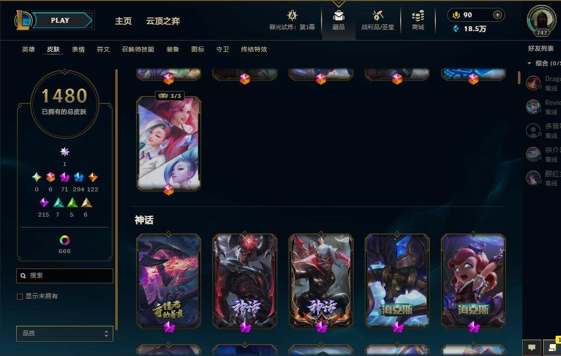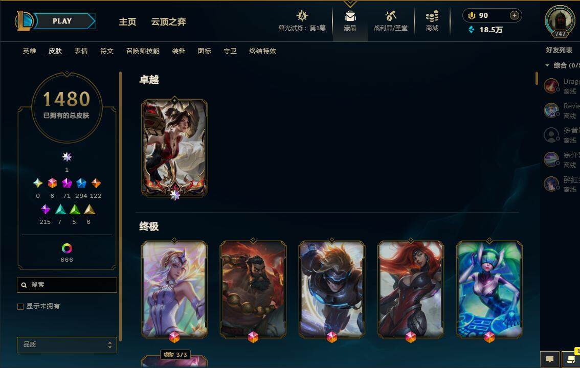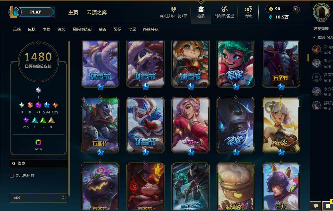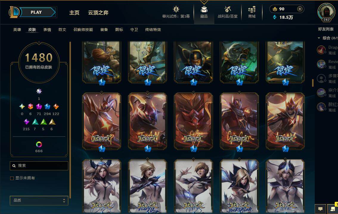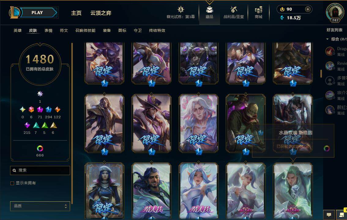 【10993041】【LD3983】171英雄/1480皮肤/8终极/71神话/294限定/48臻彩/704炫彩/122传说/215史诗/铂金账号等级:747/雪花/星守阿狸/爱意绵绵/爱情之歌/觅心之翼奎因/觅心游侠卢锡安/银河魔装机神安妮/KDA阿卡丽头像/星守索拉卡/殿堂传奇卡莎/至臻星之守护者索拉卡/至臻灵魂莲华提莫/至臻北极星使者沃里克/至臻魅惑女巫厄运小姐/至臻绝息圣堂厄运小姐/至臻