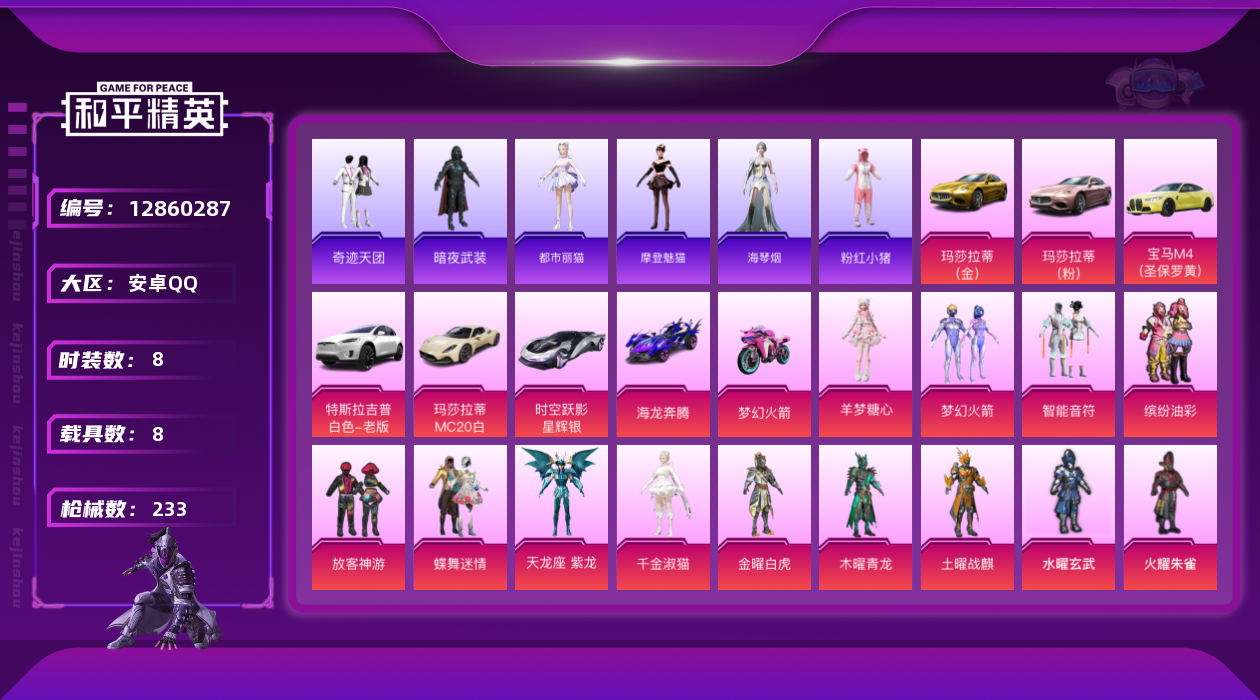 【11002639】【不可二次】【安卓QQ】龟仙人 双人摩托梦幻火箭 木曜青龙 M416-五爪金龙 金曜白虎 M249-古堡领主 木耀青龙 海龙奔腾 水曜玄武 特斯拉X白色 金属狂野 至尊龙雀飞行服 极速红龙 土耀战麟 放客神游 仓鼠灰灰 M416-仓鼠灰灰 缤纷油彩 时空跃影(星辉银) 智能音符 蝶舞迷情 梦幻火箭飞行器 SCAR-L-梦幻火箭 火耀朱雀 精灵迷巫 SCAR-L梦幻火箭 火曜朱