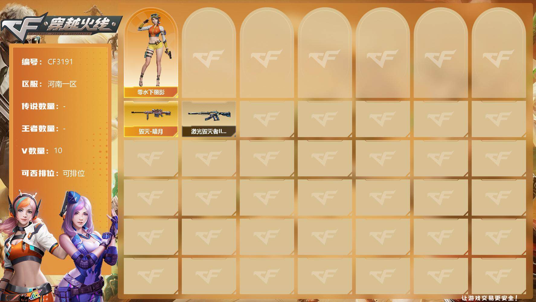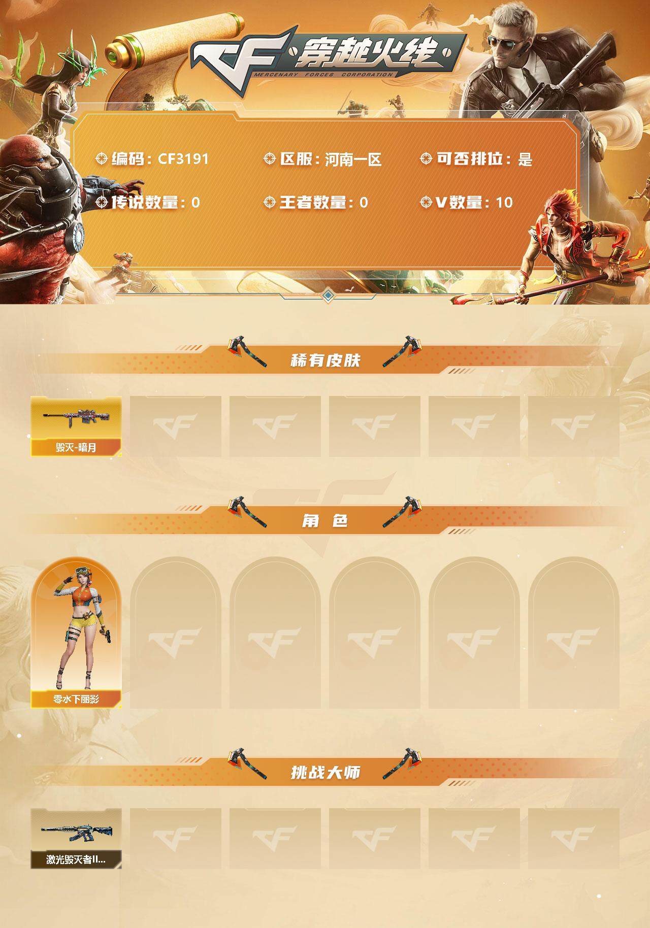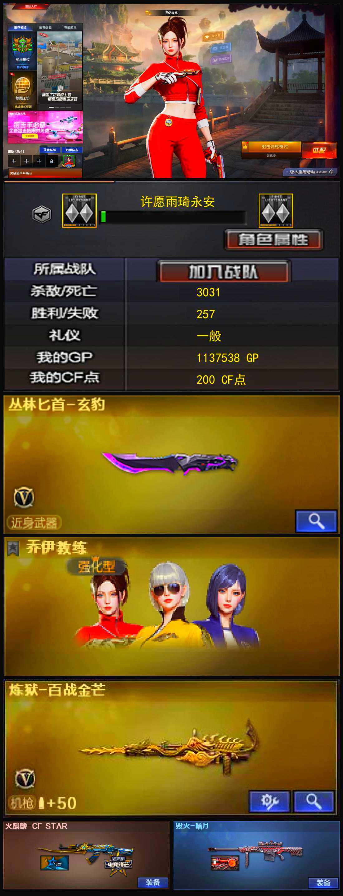 【11003419】【11003419】[12864723]河南一区-10V-0王者-0炫金【丛林匕首-玄豹】【炼狱-百战金芒】【乔伊教练】【火麒麟-CFST