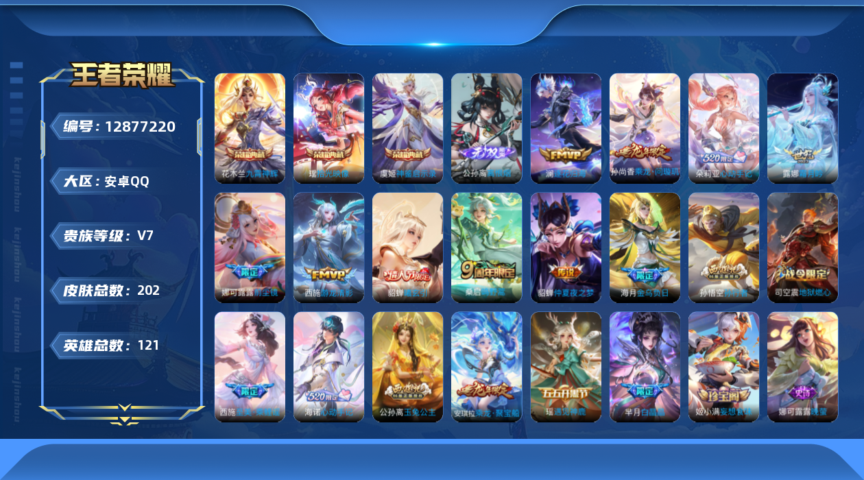 游戏区服:王者荣耀 / 安卓系统 / QQ账号