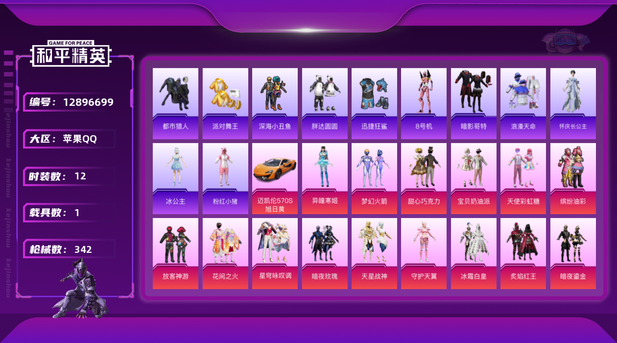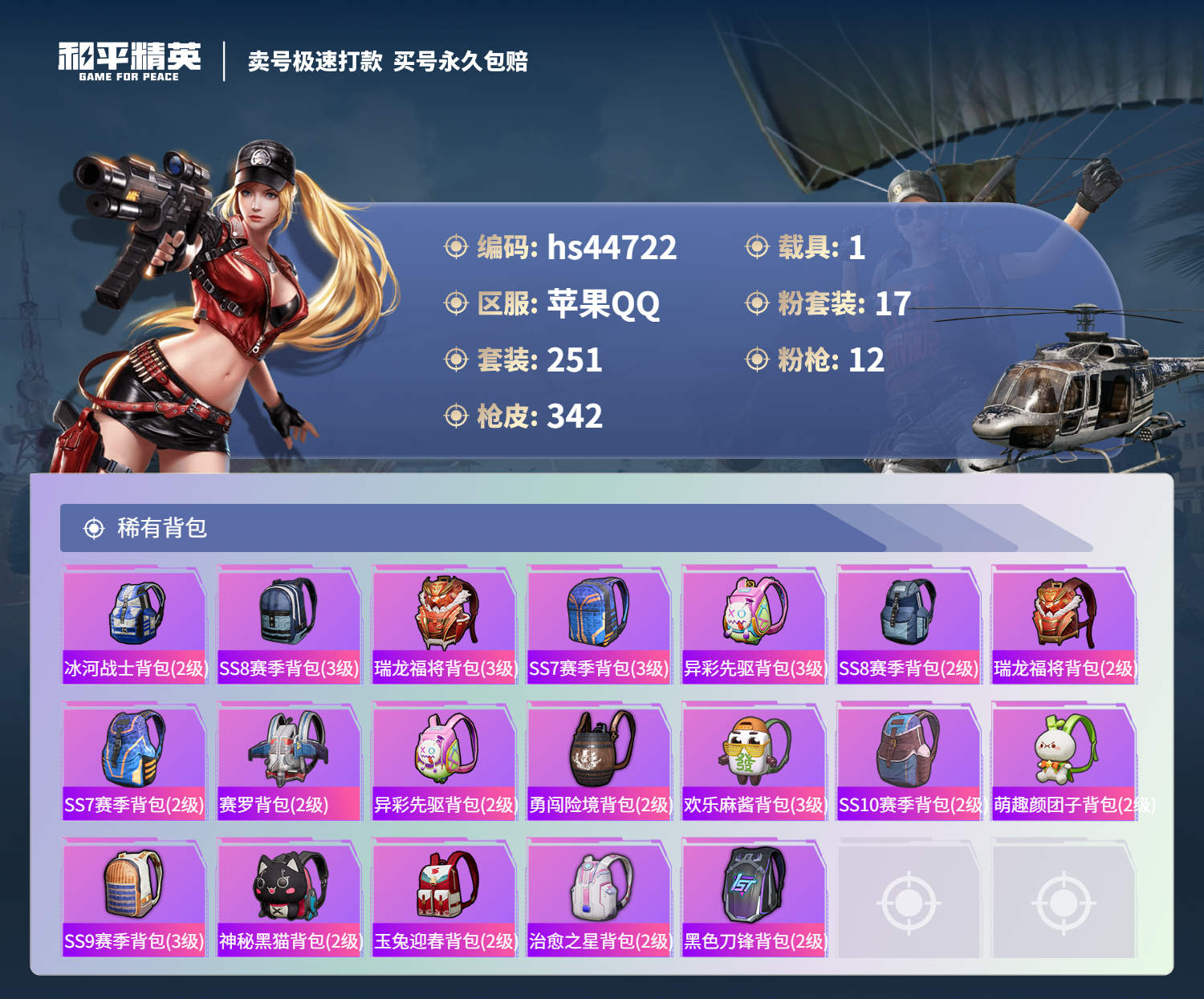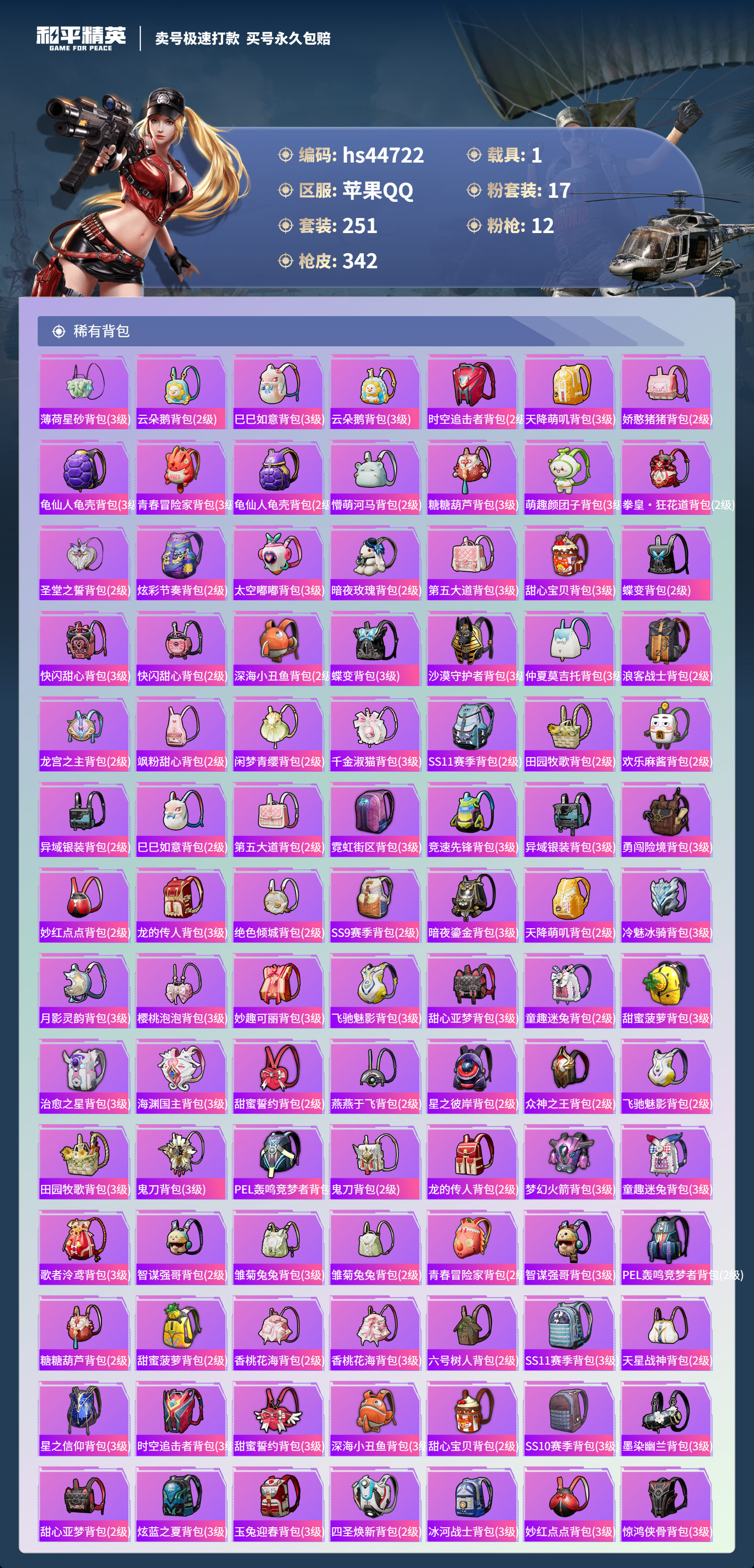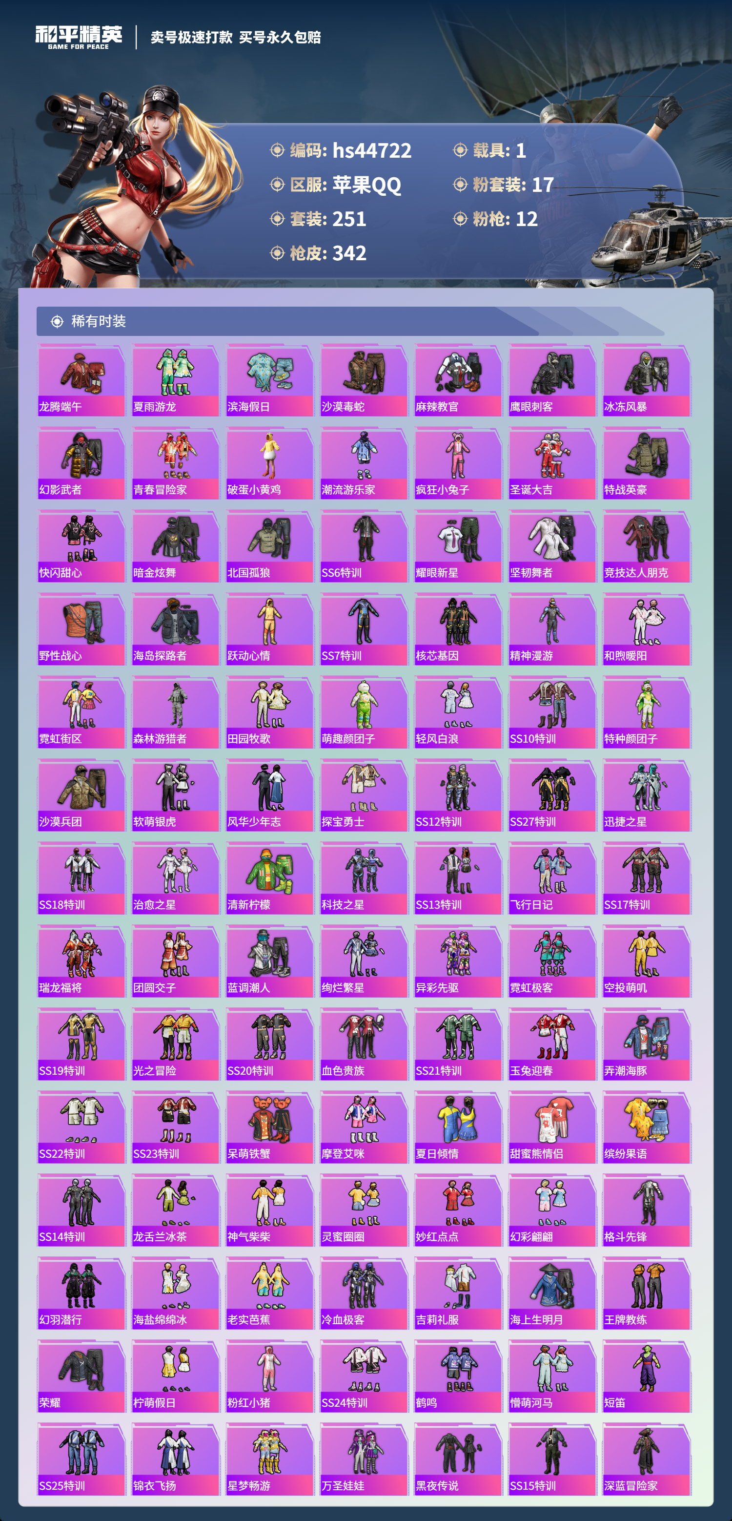 【11010138】【不可二次】【苹果QQ】龟仙人 水银刺客 迈凯伦570S 旭日黄 S686-奇异狩猎者 M762-青锋波束 M416-五爪金龙 漫步者 花间之火 都市猎人 炙焰红王 M416-电玩时刻 放客神游 野牛-青空秋雨 缤纷油彩 深海小丑鱼 瑞龙福将 童趣迷兔飞行器 浪漫天命 激萌罗小黑 纯白誓言 胖达圆圆 团圆交子 AKM-奇异狩猎者 软萌银虎 S12K-海渊国主 迅捷狂鲨 M76
