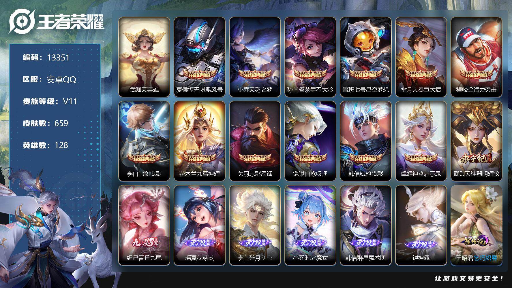 【11010481】【可二次】【QQ(安卓)】惊梅引 星界游侠 花朝如约 玄武志 挚爱花嫁 烛龙 前尘镜 天鹅之梦 仲夏夜之梦 大秦宣太后 银白咏叹调 瑶:真我赫兹 电玩·雷克斯 枫霜尽 天狼征服者 诗剑行 醍醐杖 神器·狴犴令 妄想实况 炼金王 时之恋人 电玩小子 深海之息 白晶晶 浮梦罗烟 闲日渔趣 久胜战神 瑞麟志 御旌 冠军飞将 乞巧织春 擒涛扼浪 引擎之心 天秀·启明 李逍遥 纤云弄巧