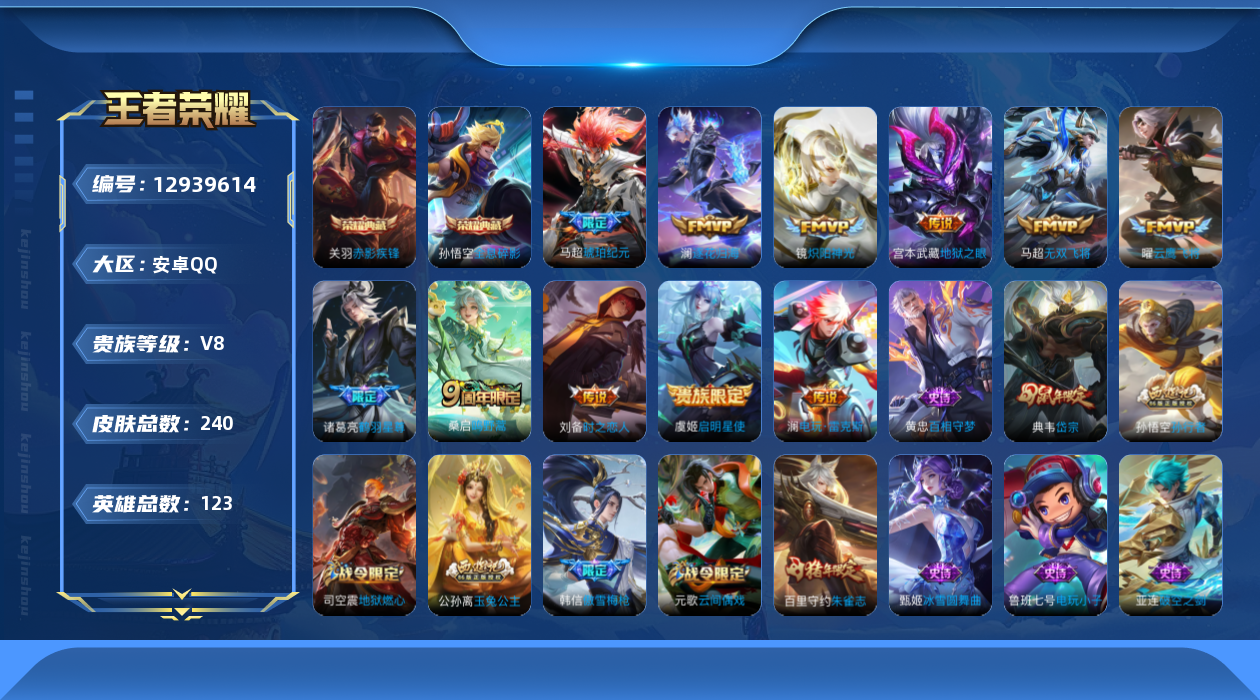 游戏区服:王者荣耀 / 安卓系统 / QQ账号
