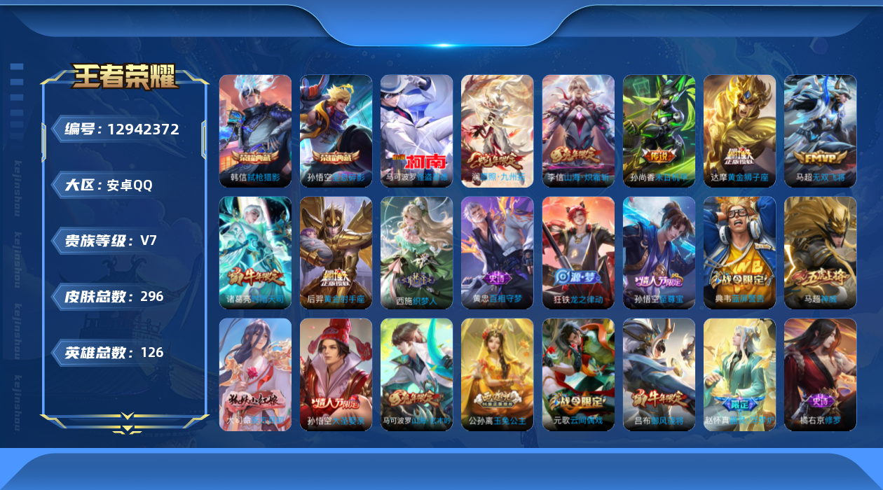 【11020439】【可二次】【QQ(安卓)】黎明之约 乱世虎臣 鹰眼统帅 水晶猎龙者 猎兽之王 原初探秘者 圣诞恋歌 星夜王子 星界战将 沙漠行僧 暗夜猫娘 紫霞仙子 御霄 全息碎影 烛龙 朔风刀 万华元夜 高山流水 银河之约 御銮 苍威无极 修罗 特工魅影 女仆咖啡 金属风暴 凯尔特女王 疑决卦 醍醐杖 德古拉伯爵 江河有灵 古海寻踪 摇滚巨星 赵云 鬼剑武藏 白昼王子 炼金王 探海日记 赏