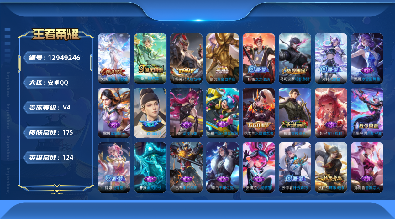 游戏区服:王者荣耀 / 安卓系统 / QQ账号