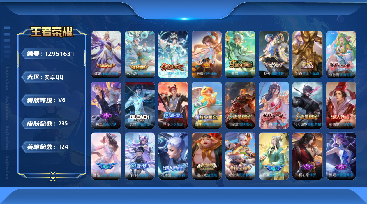 游戏区服:王者荣耀 / 安卓系统 / QQ账号