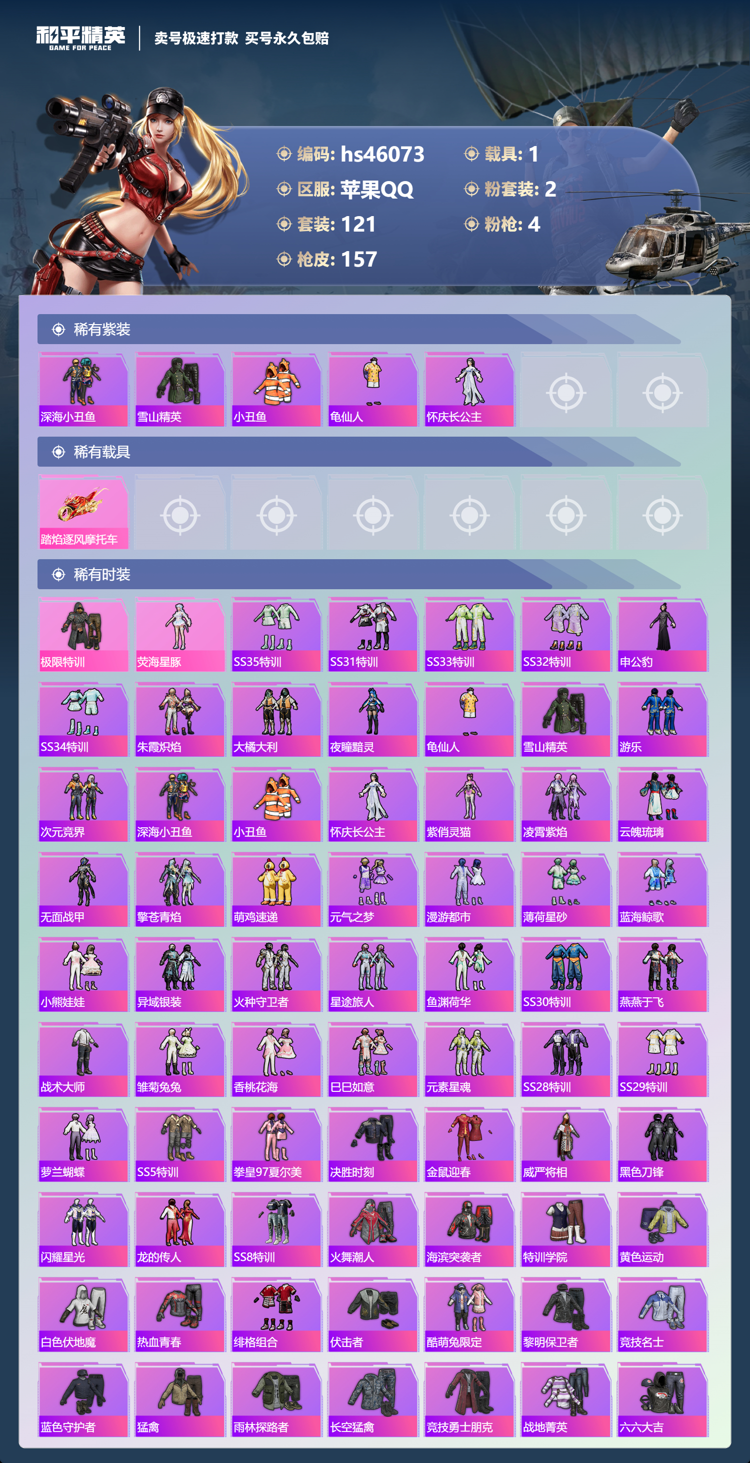 游戏区服:和平精英 / 苹果系统 / QQ帐号