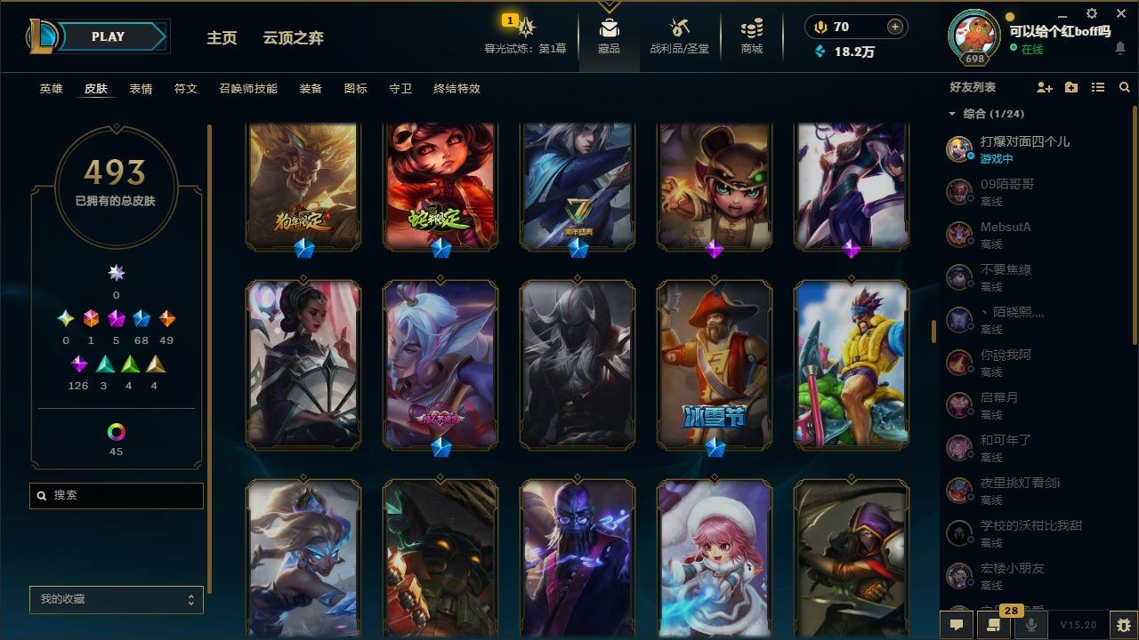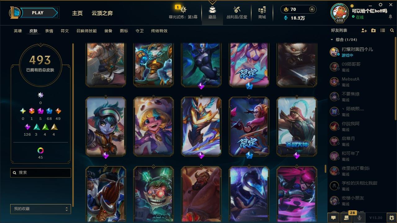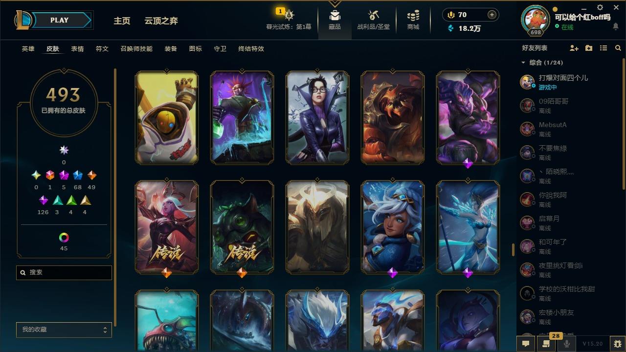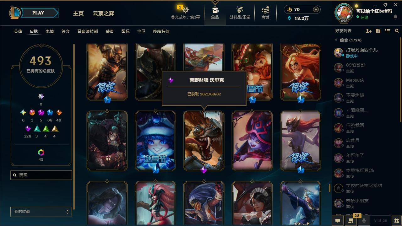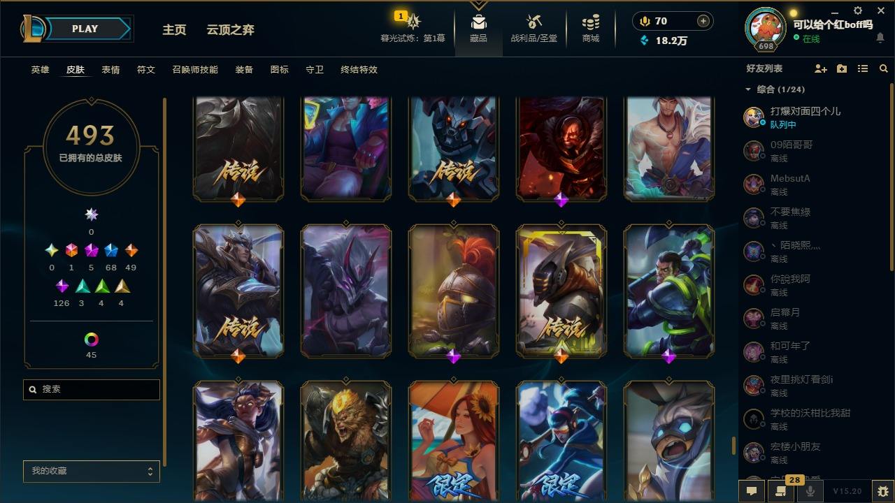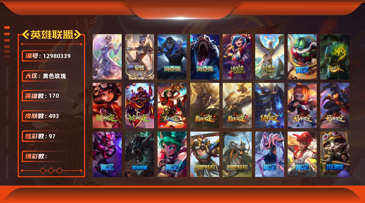 【11027343】[12980339]1终极 5神话 68限定 49传说 126史诗 493皮肤 97炫彩 170英雄 可二次 可修改实名 【至臻】:至臻 玉剑传说 武剑仙 【海克斯】:海克斯 卡萨丁,海克斯 雷克顿 【限定】:斩星魔剑 易,创星之灵 璐璐,养蜂人 辛吉德 【情人节限定】:甜心之翎 洛 【赛季限定皮】:胜利凤凰 艾尼维亚,胜利之运 崔斯特 【冠军限定系列】:S1FNC 酒桶,