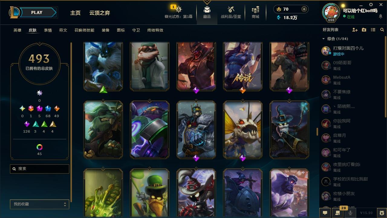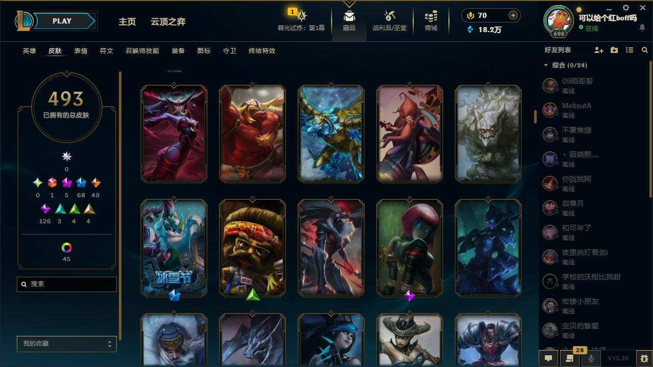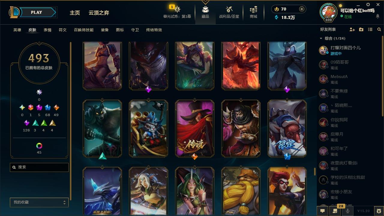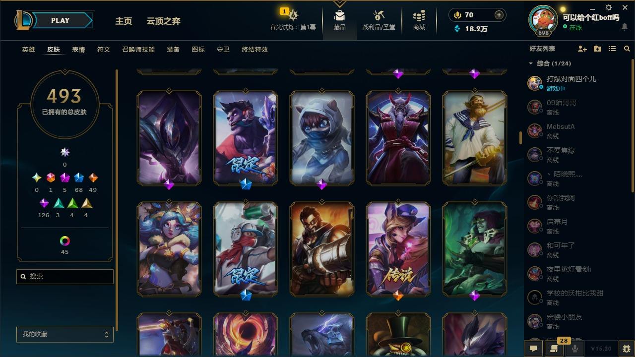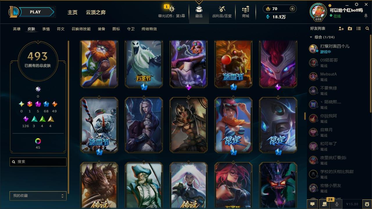 【11027343】[12980339]1终极 5神话 68限定 49传说 126史诗 493皮肤 97炫彩 170英雄 可二次 可修改实名 【至臻】:至臻 玉剑传说 武剑仙 【海克斯】:海克斯 卡萨丁,海克斯 雷克顿 【限定】:斩星魔剑 易,创星之灵 璐璐,养蜂人 辛吉德 【情人节限定】:甜心之翎 洛 【赛季限定皮】:胜利凤凰 艾尼维亚,胜利之运 崔斯特 【冠军限定系列】:S1FNC 酒桶,