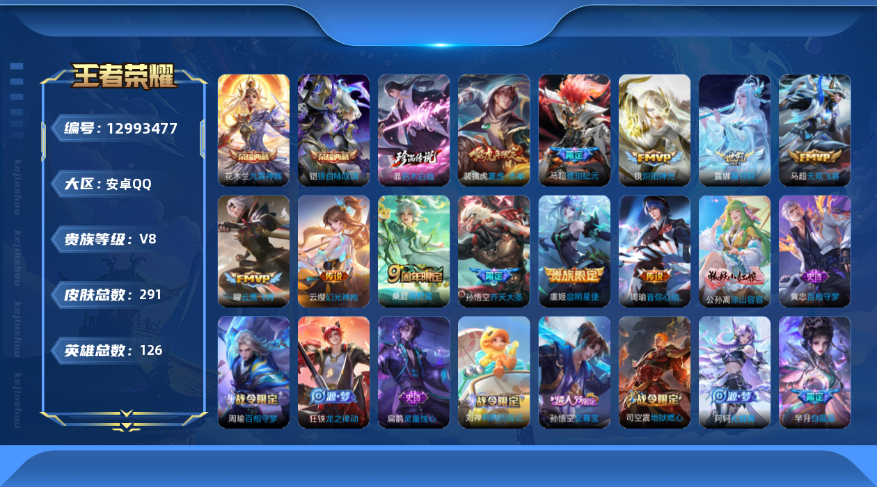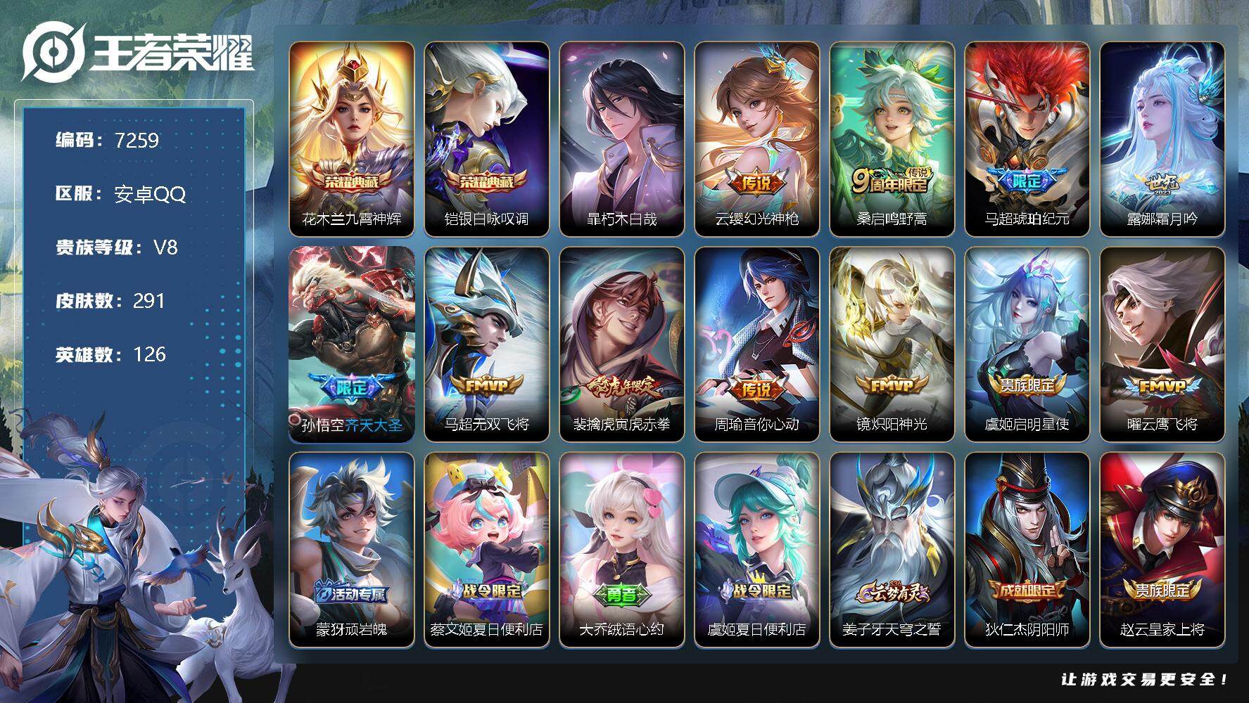 游戏区服:王者荣耀 / 安卓系统 / QQ账号