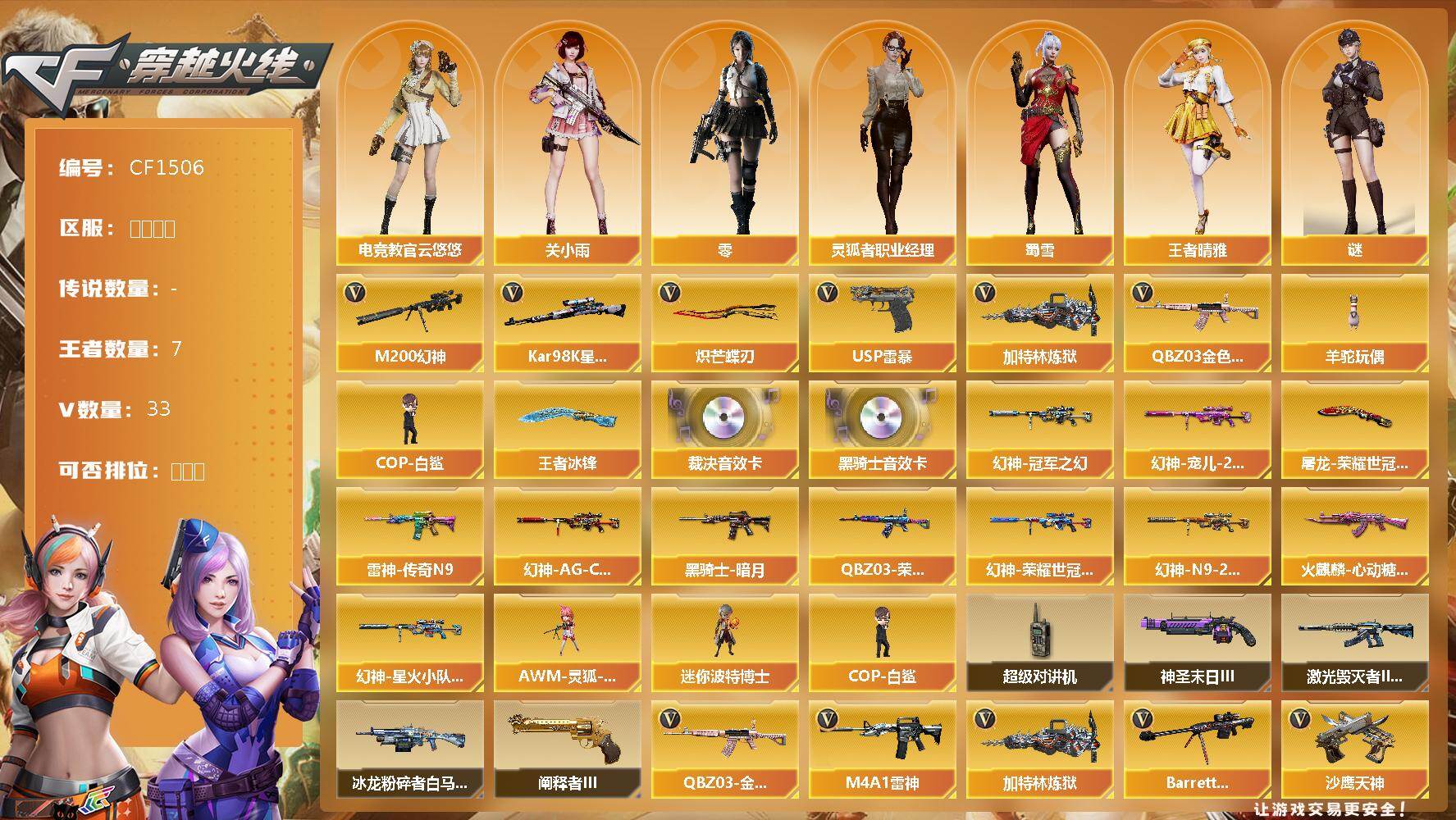 【11040967】【11040967】[13051462]河北一区-33V-7王者-0炫金【幻神7皮】【【M200-幻神】【幻神-AG-CFPLS24冠军